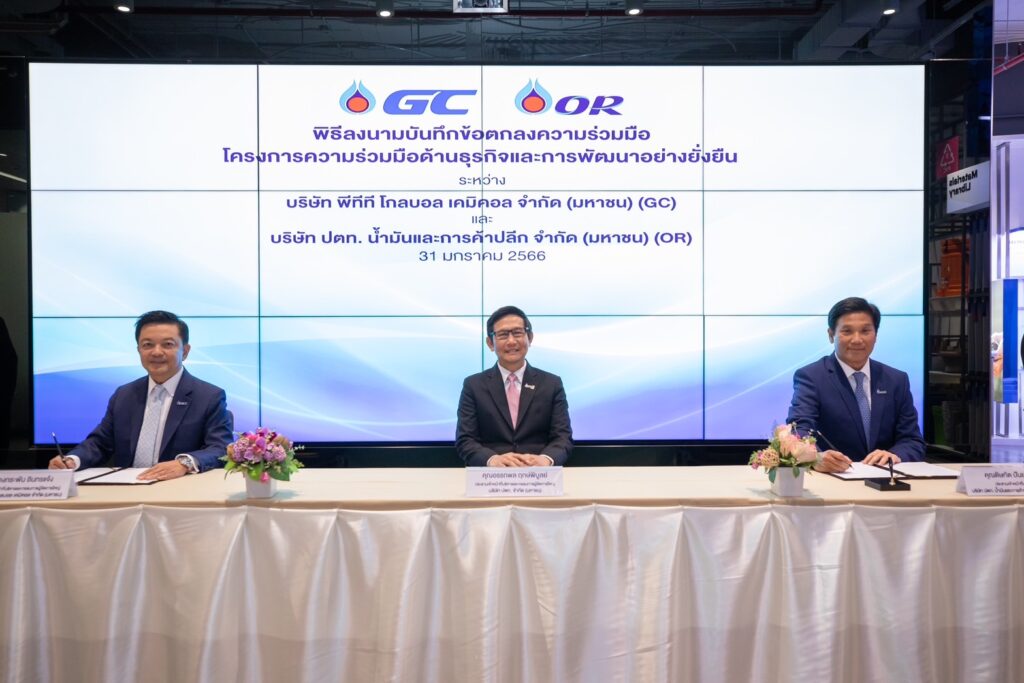 นายดิษทัต ปันยารชุน CEO OR กล่าวว่า ความร่วมมือครั้งนี้ ใช้จุดแข็งของทั้ง OR และ GC ใน 4 ด้าน ได้แก่ การพัฒนาองค์ความรู้ด้านความยั่งยืน (Knowledge) การสร้างความมั่นคงด้านพลังงาน (Energy) ความร่วมมือในการดำเนินธุรกิจอย่างยั่งยืนตลอดทั้งห่วงโซ่คุณค่า (Synergy) และการผสานความร่วมมือด้านการพัฒนาธุรกิจ (Explore) ความร่วมมือด้านการสร้างความมั่นคงทางพลังงาน เป็นการร่วมมือด้าน Supply Chain ทางพลังงาน อาทิ การผลิต การจัดหา และซื้อขายน้ำมันสำเร็จรูปและผลิตภัณฑ์ด้านพลังงานทดแทน ความร่วมมือด้านการดำเนินธุรกิจอย่างยั่งยืนตลอดทั้งห่วงโซ่คุณค่า อาทิ ร่วมกันต่อยอดขยายผลการบริหารจัดการพลาสติกใช้แล้วแบบครบวงจร ด้วย YOU เทิร์น Platform ของ GC และโครงการแยกแลกยิ้ม ของ OR เพื่อนำไปเข้าสู่กระบวนการรีไซเคิลและผลิตเป็นผลิตภัณฑ์ที่มีมูลค่าเพิ่ม พร้อมช่วยลดปัญหาขยะพลาสติกควบคู่ไปกับลดการปล่อยก๊าซเรือนกระจก และร่วมกันศึกษาและพัฒนาการใช้วัสดุและบรรจุภัณฑ์ยั่งยืน มาใช้ในกลุ่มธุรกิจค้าปลีกของ OR รวมทั้งการผสานความร่วมมือในการขยายพื้นที่สถานีชาร์จไฟฟ้า EV Station Pluz พร้อมจุดบริการซ่อมบำรุง FIT Auto อีกทั้งร่วมกันศึกษาและพัฒนาการใช้ผลิตภัณฑ์ของ OR เช่น น้ำมันหล่อลื่นในโรงงานและอุปกรณ์ต่างๆ ในโรงงานของ GC