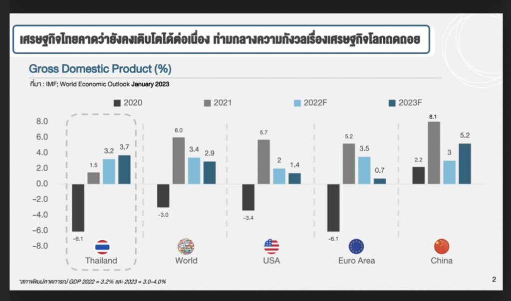 นายพจน์ หะริณสุต ประธานเจ้าหน้าที่บริหาร บริษัท หลักทรัพย์จัดการกองทุน วรรณ จำกัด กล่าวว่า ขณะนี้หลายคนอาจจะกังวลเรื่องการถดถอยของเศรษฐกิจ แต่ส่วนตัวมองว่า ยังไม่ควรตระหนักมาก เนื่องจากหากดูตัวเลขโดยรวมเศรษฐกิจปีนี้ก็ยังไม่ได้แย่มาก กองทุนการเงินระหว่างประเทศ (IMF) เพิ่มประมาณการจีดีพีโลกปีนี้ขึ้นเป็น 2.9% แม้ล่าสุด ธนาคารกลางสหรัฐ หรือเฟดประกาศขึ้นดอกเบี้ยไปอีก 0.25% สู่ระดับ 4.50-4.75% และคาดกันว่าการประชุมเฟดรอบเดือนมีนาคม และเดือนพฤษภาคม อาจจะขึ้นดอกเบี้ยอีก รอบ 0.25% โดยเดือน พ.ค.คาดจะขึ้นเป็นรอบสุดท้าย เพื่อคุมเงินเฟ้อสหรัฐให้ลงมาอยู่ที่ 2% จากขณะนี้อยู่ที่6%