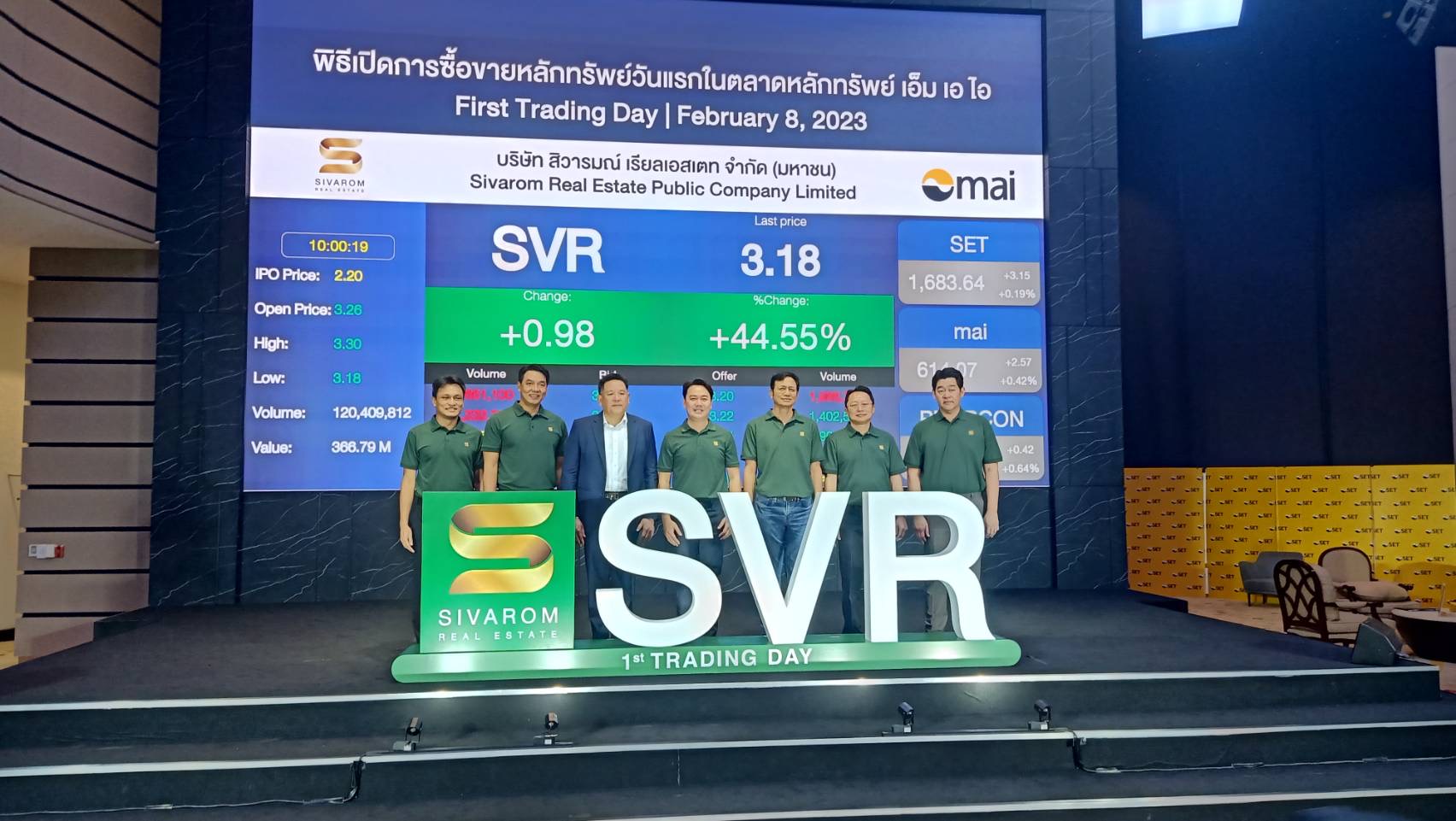 นายแมนพงศ์ เสนาณรงค์ รองผู้จัดการ หัวหน้าสายงานผู้ออกหลักทรัพย์ ตลาดหลักทรัพย์แห่งประเทศไทย พร้อมด้วยนายประพันธ์ เจริญประวัติ ผู้จัดการตลาดหลักทรัพย์ เอ็ม เอ ไอ (mai) ,นายอรรถปวิทย์ มโนธรรมรักษา กรรมการผู้จัดการ บมจ. สิวารมณ์ เรียลเอสเตท ร่วมกันทำพิธีเปิดการซื้อขายหลักทรัพย์เป็นวันแรกในตลาด เอ็ม เอ ไอ ของบมจ. สิวารมณ์ เรียลเอสเตท ในกลุ่มอสังหาริมทรัพย์และก่อสร้าง ด้วยมูลค่าหลักทรัพย์ ณ ราคา IPO ที่ ล้านบาท ใช้ชื่อย่อในการซื้อขายหลักทรัพย์ “SVR ” โดยเปิดการซื้อขายที่ ราคา 3.26 บาท เพิ่มขึ้น 1.06 บาท หรือ 48.18 % จากราคา IPO ที่ 2.20 บาทต่อหุ้น