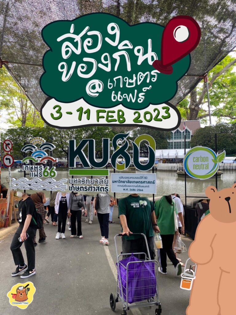 งานเกษตรแฟร์ ที่มหาวิทยาลัยเกษตรศาสตร์ บางเขน ปีนี้จัดขึ้นภายในมหาวิทยาลัย ความยาวของงานมากกว่า 4.9 กิโลเมตร ร้านค้ากว่า 1,500 ร้านค้า ซึ่งไฮไลต์ภายในงานปีนี้ จะมีการสาธิตการทำอาหารรักสุขภาพ หรือ ที่เรียกกันว่า แพลนต์ เบส โดยเป็นอาหารที่มาจากพืชอย่างน้อย 95 % ประกอบไปด้วย ผักผลไม้ พืชตระกูลถั่ว และธัญพืช ทั้งนี้ไม่ได้หมายความว่าจะไม่มีเนื้อสัตว์ผสมอยู่เลยเพียงแต่มีปริมาณน้อย เป็นอาหารสำหรับผู้ที่ต้องการลดหรือหลีกเลี่ยงการกินเนื้อสัตว์ ซึ่งที่เห็นอยู่นี้ คือ การสาธิตการทำหมูปิ้งจากเห็ดแครงแปลงรูป ที่ส่วนผสมมาจากพืช 100% ซึ่งเป็นผลงานของสถาบันค้นคว้าและพัฒนาผลิตภัณฑ์อาหารของมหาวิทยาลัยเกษตรศาสตร์