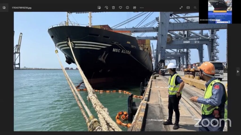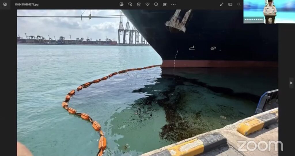 นายกันติ ชินสำราญ นิติกรปฎิบัติการ กลุ่มกฏหมายและความตกลงระหว่างประเทศ สำนักกฏหมาย กรมเจ้าท่า แถลงการดำเนินการ กรณีคราบน้ำมันรั่วไหลจากบริเวณข้างเรือ MSC ALXEA สัญชาติ PANAMA เทียบท่า C2 ท่าเทียบเรือแหลมฉบัง เมื่อวันที่ 12 กุมภาพันธ์ที่ผ่านมา โดยนายสรพงศ์ ไพฑูรย์พงษ์ รองปลัดกระทรวงคมนาคม รักษาการอธิบดีกรมเจ้าท่า ได้สั่งการให้สำนักงานเจ้าท่าภูมิภาคที่ 6 สาขาชลบุรี เร่งขจัดคราบน้ำมันที่รั่วไหล ลดผลกระทบต่อสิ่งแวดล้อม ดำเนินการตามกฏหมายอย่างเคร่งครัด และห้ามปล่อยเรือออกจากท่าเด็ดขาด