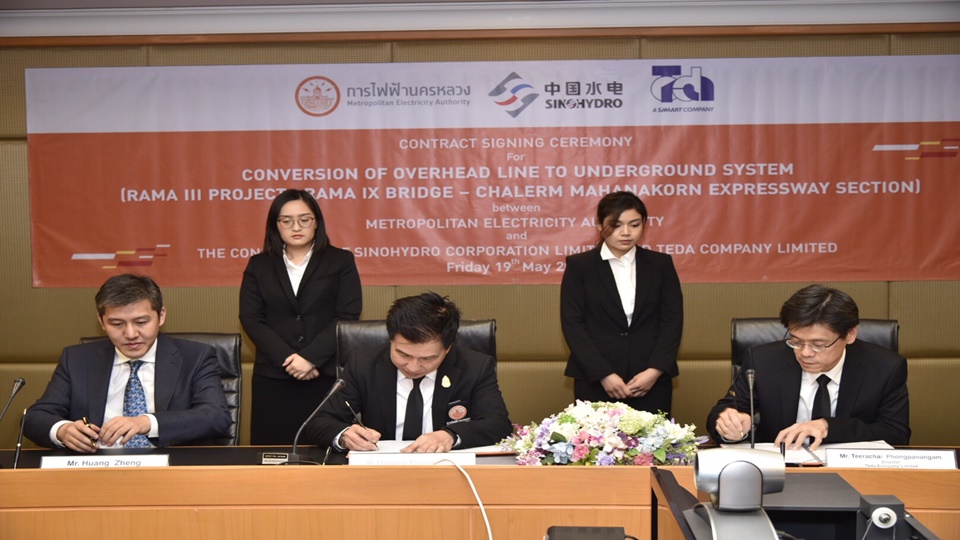 นายชัยยงค์ พัวพงศกร ผู้ว่าการการไฟฟ้านครหลวง (กฟน.) ในฐานะผู้แทนหน่วยงาน ร่วมพิธีลงนามสัญญาโครงการเปลี่ยนระบบสายไฟฟ้าอากาศเป็นสายไฟฟ้าใต้ดิน โครงการพระราม 3 ร่วมกับกิจการค้าร่วมกับบริษัท ซิโนไฮโดร คอร์ปอเรชั่น จำกัด และบริษัท เทด้า จำกัด