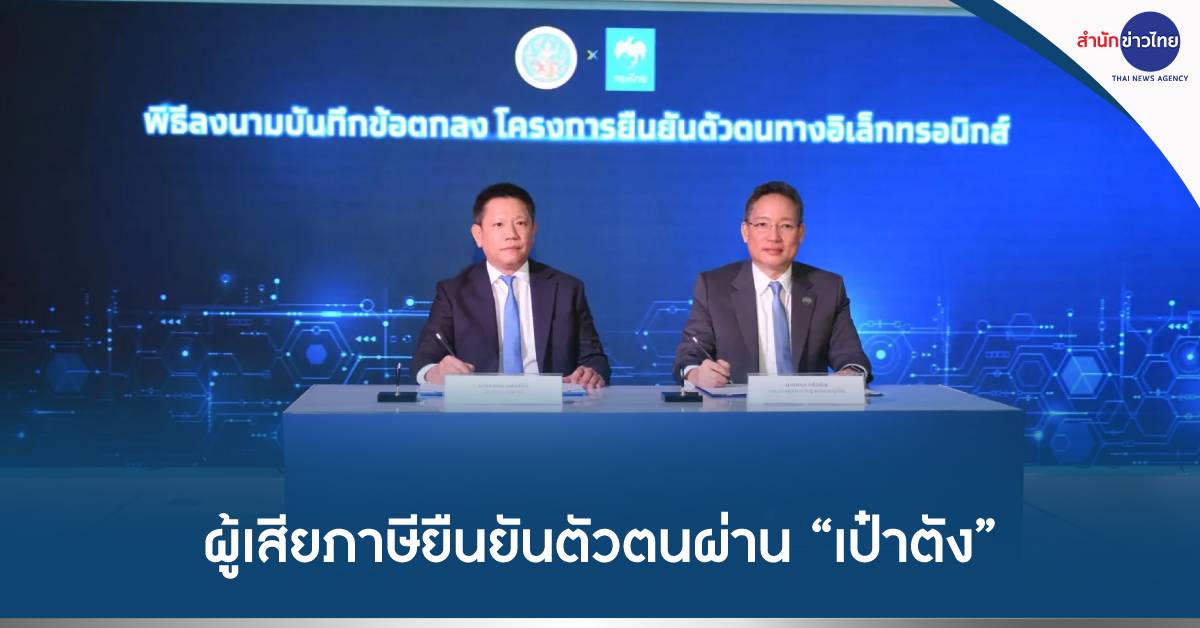 กรุงเทพฯ 14 ก.พ.-กรมสรรพากร จับมือธนาคารกรุงไทย เพิ่มทางเลือกใหม่ให้ผู้เสียภาษี ยืนยันตัวตนทางอิเล็กทรอนิกส์ผ่านแอปฯ “เป๋าตัง”