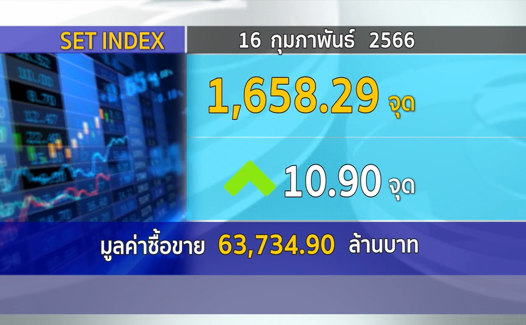 กทม. 16 ก.พ.-SET ปิดวันนี้ที่ 1,658.29 จุด เพิ่มขึ้น 10.90 จุด (+0.66%) มูลค่าการซื้อขาย 63,734.90 ล้านบาท