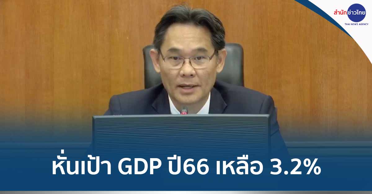 กรุงเทพฯ 17 ก.พ.-สภาพัฒน์ ปรับลดจีดีพีไทยปี 66 ขยายตัวร้อยละ 3.2 จับตาปัจจัยลบ เศรษฐกิจโลกชะลอตัว ความผันผวนทางการเงินโลก ภาระหนี้สิน ท่ามกลางแนวโน้มดอกเบี้ยสูงขึ้น ลุ้นรัฐบาลใหม่มีนโยบายฟื้นเศรษฐกิจ