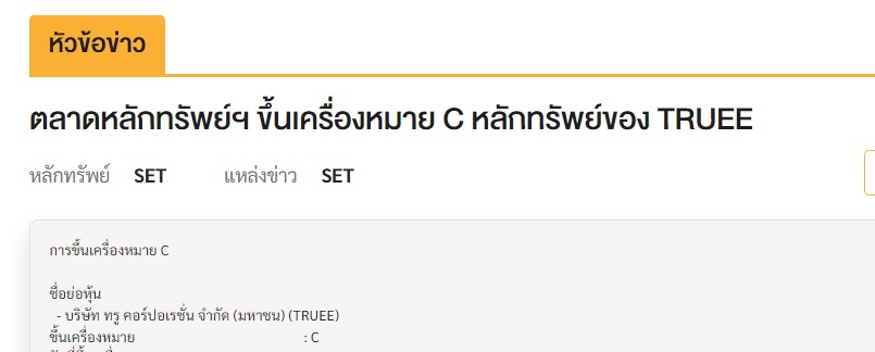 ปัจจุบัน TRUEE อยู่ระหว่างถูกขึ้นเครื่องหมาย SP เพื่อดำเนินการตามขั้นตอนควบบริษัท .–สำนักข่าวไทย