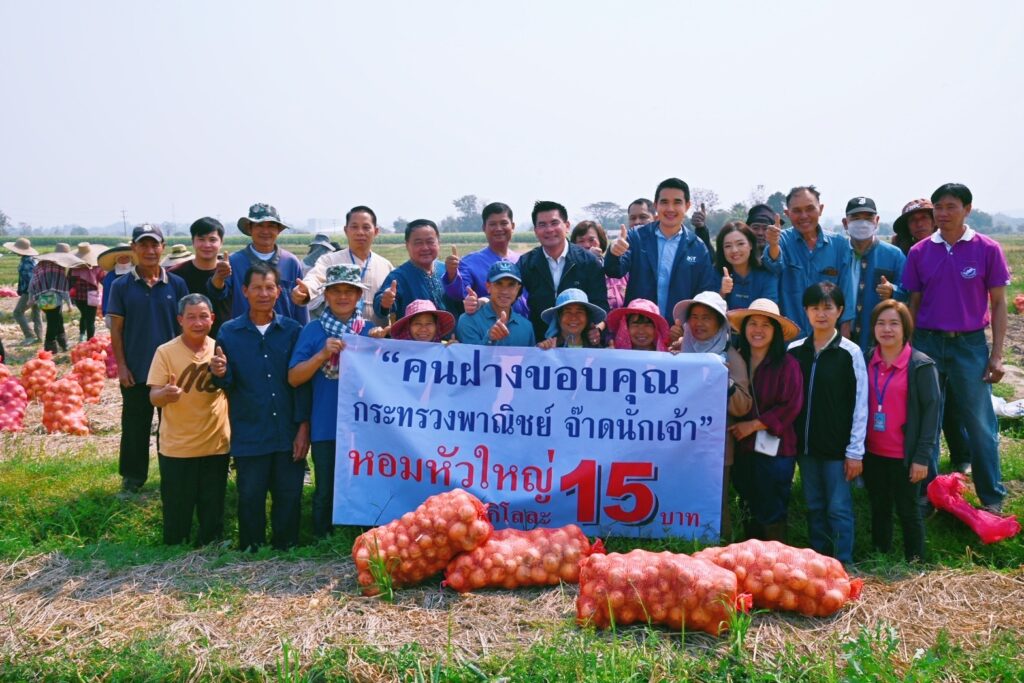 นนทบุรี 28 ก.พ.-อธิบดีกรมการค้าภายในลงพื้นที่ อ.ฝาง เชื่อมโยงผู้ประกอบการเข้ารับซื้อพืช 3 หัวจากเกษตรกรหลังผลผลิตเริ่มออกสู่ตลาด พร้อม kick off ปล่อยคาราวานหอมหัวใหญ่และกระเทียมกระจายไปยังตลาดปลายทางในภูมิภาคต่างๆ เพื่อเร่งระบายผลผลิต เผยหลังดำเนินโครงการ “อมก๋อย โมเดล” ตั้งแต่ต้นฤดูกาลผลิต ดันราคาขยับขึ้นทุกชนิด หอมหัวใหญ่ เพิ่ม 30% หอมแดง เพิ่ม 37% และกระเทียม เพิ่ม 50%