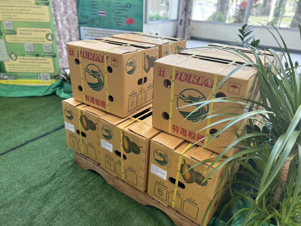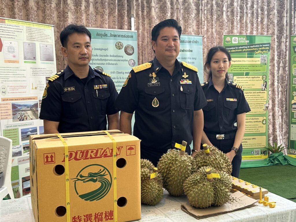 สำหรับการส่งออกทุเรียน ทุกชิปเม้นท์จะต้องผ่านการตรวจใบรับรอง GAP ที่รับรองจากสำนักวิจัยและพัฒนาการเกษตรเขตที่ 6 และเขตที่เกี่ยวข้อง โดยด่านตรวจพืช สำนักควบคุมพืชและวัสดุการเกษตร ทุเรียนทุกชิปเม้นท์ที่ส่งออกต้องผ่านการตรวจคุณภาพ (เปอร์เซ็นต์น้ำหนักแห้งเนื้อทุเรียน) และผ่านการตรวจศัตรูพืช ตลอดจนเงื่อนไขต่างๆ ตามข้อตกลงตามพิธีสารไทย-จีน เพื่อรับรองสุขอนามัยพืช รวมทั้งผนึกซีลกรมวิชาการเกษตรท้ายตู้จนถึงปลายทางประเทศจีน ย้ำทุเรียนส่งออกต้องเป็นผลผลิตที่มีคุณภาพได้มาตรฐานเท่านั้น และหากด่านตรวจพืช ตรวจพบทุเรียนอ่อน ให้เผาทำลายทันที ป้องกันการนำกลับไปขายให้คนไทย เนื่องจากที่ผ่านมา พบการลักลอบนำทุเรียนอ่อนที่ไม่ผ่านเงื่อนไขส่งออก ไปขายให้กับผู้บริโภคตามรายทาง ซึ่งที่ผ่านมาได้รับการร้องเรียนเข้ามาจำนวนมาก