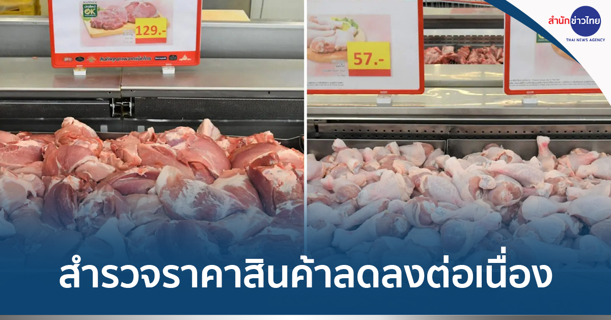 นนทบุรี 1 มี.ค.-รองอธิบดีกรมการค้าภายในเผยได้สำรวจราคาสินค้าอุปโภคและบริโภคทั้งตลาดสดและห้างสรรพสินค้าส่วนใหญ่ลดลงต่อเนื่อง เช่น หมูเนื้อแดง ไหล่ 127 บาท/กก. สะโพก 129 บาท/กก. ไก่สดน่องติดสะโพก 55-57 บาท/กก. เนื้ออก 65 บาท/กก.) ไข่ไก่ คละเบอร์ 3-4 3.60 บาท/ฟอง น้ำมันปาล์ม 41.75-44.75 บาท/ขวด พร้อมตรวจเข้มเครื่องชั่ง ปริมาณ-น้ำหนักสินค้า สร้างความเป็นธรรมให้ผู้บริโภค
