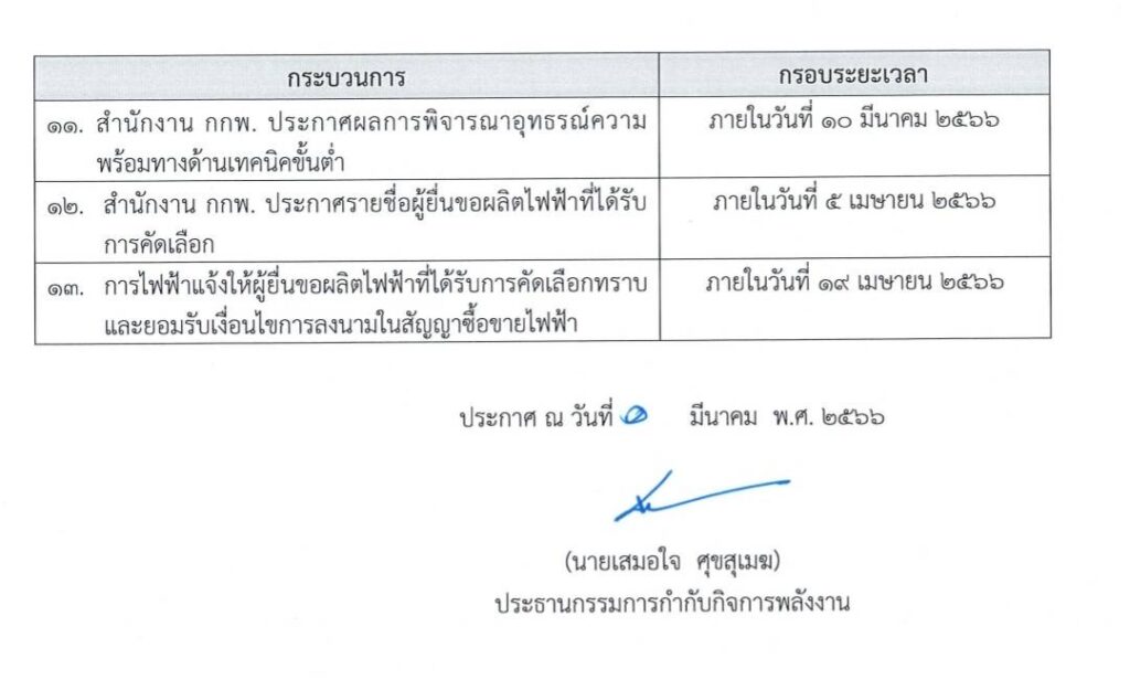 โดยการรับซื้อเป็นแบบไม่มีการแข่งขันราคา มีผู้ยื่นคำร้องเสนอขายรวม 670 โครงการ แบ่งเป็นผู้ผลิตไฟฟ้ารายเล็ก(SPP) 272 โครงการ และผู้ผลิตไฟฟ้าขนาดเล็กมาก (VSPP) 398 โครงการ รวม 17,400 เมกะวัตต์ สูงกว่าที่กำหนดไว้มากกว่า 3 เท่า ทาง กกพ. ได้ประกาศรายชื่อผู้ผ่านการคัดเลือก รอบล่าสุด 318 ราย รวม 7,729 เมกะวัตต์ และไม่ผ่านการคัดเลือกเข้าร่วมโครงการ 230 โครงการรวม 6,126 เมกะวัตต์ ซึ่งมีการยื่นอุทธรณ์ จนกระทั้งมีการขยายระยะเวลาดังกล่าว.-สำนักข่าวไทย