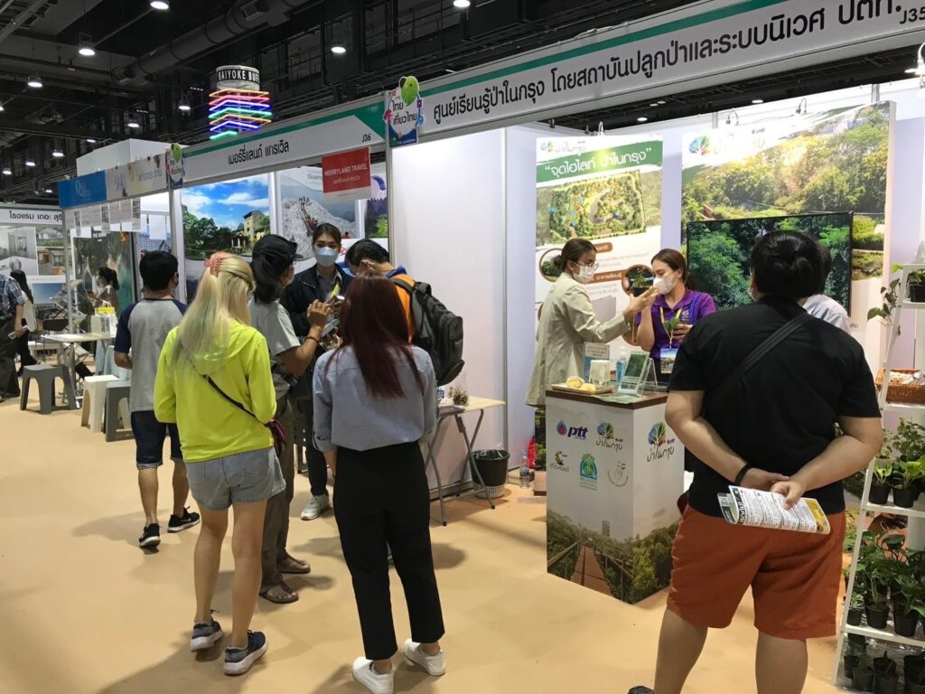ศูนย์เรียนรู้ป่าในกรุง เป็นพื้นที่ต้นแบบการปลูกป่าเพื่อฟื้นฟูระบบนิเวศน์ในเขตเมือง ที่ได้ผสานองค์ความรู้จากการปลูกป่าล้านไร่ของ ปตท.เข้ากับแนวคิดการปลูกป่าแบบมิยาวากิ ฟื้นฟูพื้นที่รกร้างกว่า 12 ไร่ ถนนสุขาภิบาล 2 เขตประเวศ กรุงเทพฯ ให้กลายเป็นพื้นที่ป่านิเวศน์ในเขตเมืองที่อุดมสมบูรณ์ เช่นเดียวกับ “ศูนย์เรียนรู้ป่าวังจันทร์” จ.ระยอง ที่ตั้งอยู่บนพื้นที่ 350 ไร่ โดยบูธป่าในกรุง ได้รับความสนใจจากผู้เข้าชมงานอย่างต่อเนื่อง