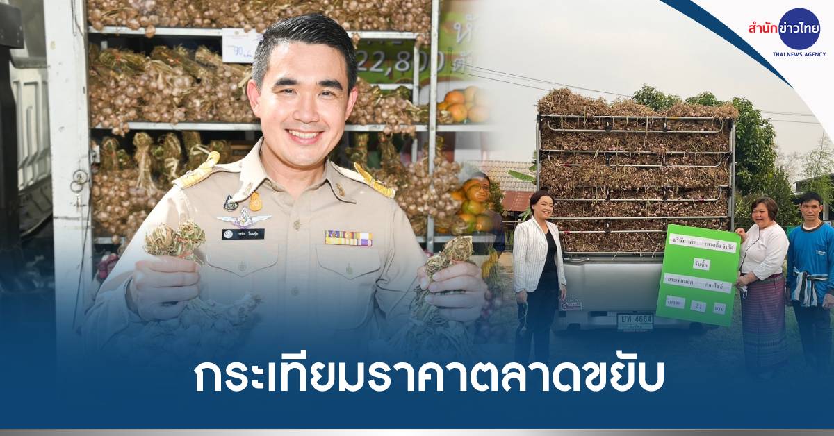 เชียงใหม่ 5 มี.ค.-รองอธิบดีกรมการค้าภายใน นำผู้ประกอบการลงพื้นซื้อกระเทียมจากกลุ่มเกษตรกรในพื้นที่จังหวัดเชียงใหม่ ปริมาณ 150 ตัน ในราคากิโลกรัมละ 21 บาท ส่งผลให้ราคาในท้องตลาดขยับเพิ่มขึ้นทันที คาดราคาจะดีขึ้นต่อเนื่องตลอดทั้งฤดูการผลิต