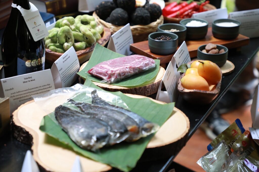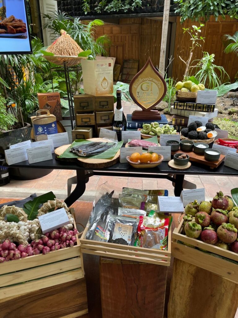 อย่างไรก็ตาม ข้อมูลจากกรมทรัพย์สินทางปัญญา โดยร้านวรรณยุค ร้านอาหารไทยระดับ Fine Dining ในงานนี้ได้นำวัตถุดิบ GI ถึง 23 รายการ มารังสรรค์เป็นเมนูอาหารสุดพิเศษที่ผสมผสานความเป็นไทยและสากลได้อย่างลงตัว เช่น น้ำพริกลงเรือจากไข่เค็มไชยา หมูย่างมะขามเทศเพชรโนนไทย ขนมเบื้องญวนไชโป้วโพธาราม ปลากะพงสามน้ำทะเลสาบสงขลาย่าง ยำปลาดุกร้าทะเลน้อยพัทลุงใส่มะพร้าวอ่อน เนื้อโคขุนโพนยางคำเค็ม ยำเนื้อมังคุดเขาคีรีวง เป็นต้น ชูรสด้วยกระเทียมศรีสะเกษ หอมแดงศรีสะเกษ และพริกไทยจันท์ เป็นต้น.-สำนักข่าวไทย