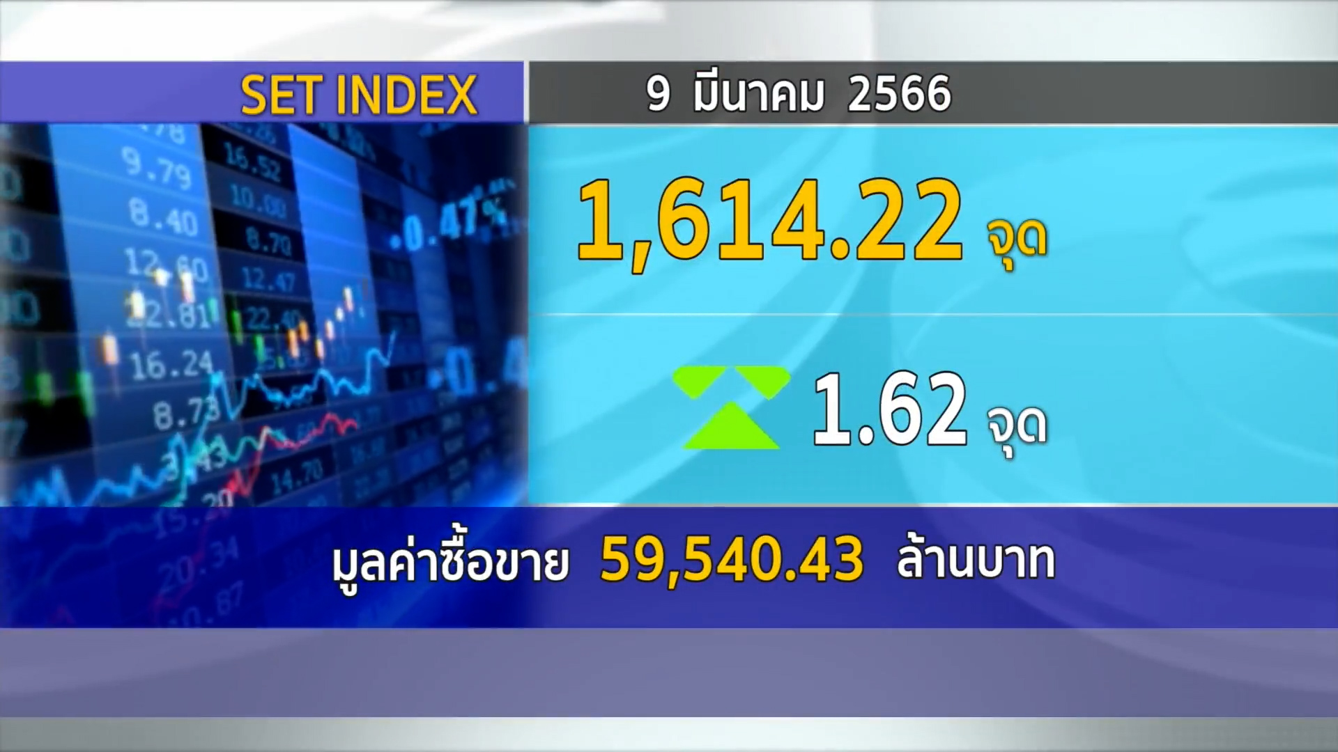 กทม. 9 มี.ค.- SET ปิดวันนี้ที่ 1,614.22 จุด เพิ่มขึ้น 1.62 จุด (+0.10%) มูลค่าการซื้อขาย 59,540.43 ล้านบาท