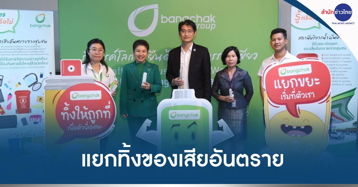 นางกลอยตา ณ ถลาง ผู้ช่วยกรรมการผู้จัดการใหญ่ สายงานสื่อสารองค์กรและกิจการเพื่อความยั่งยืน บริษัท บางจาก คอร์ปอเรชั่น จำกัด (มหาชน) เปิดเผยว่าบางจากฯร่วมพิธีประกาศเจตนารมณ์ความร่วมมือระหว่างภาครัฐกับภาคเอกชนในการเก็บรวบรวมของเสียอันตรายจากชุมชน ณ กรมควบคุมมลพิษ ร่วมกับ นายปิ่นสักก์ สุรัสวดี อธิบดีกรมควบคุมมลพิษ และผู้บริหารจากหน่วยงานภาครัฐและเอกชนกว่า 50 องค์กร เพื่อเสริมสร้างความตระหนักให้กับประชาชนเกี่ยวกับผลกระทบต่อสุขภาพอนามัยและสิ่งแวดล้อมจากการทิ้งของเสียอันตราย 4 ประเภทอย่างไม่ถูกต้อง คือ หลอดไฟ ถ่านไฟฉาย ภาชนะบรรจุสารเคมี และซากผลิตภัณฑ์ครื่องใช้ไฟฟ้าและอุปกรณ์อิเล็กทรอนิกส์ เนื่องจากมีโลหะหนัก อาทิ ตะกั่ว แคดเมียม ปรอท เป็นองค์ประกอบที่อาจเกิดการรั่วไหลสู่สิ่งแวดล้อมหากกำจัดไม่ถูกวิธี และเพื่อส่งเสริมการแยกทิ้งของเสียอันตรายจากชุมชนออกจากมูลฝอยทั่วไป โดยการกำหนดจุดทิ้งหรือรวบรวมอย่างครอบคลุมและเหมาะสมสอดคล้องกับบริบทของพื้นที่ทั้งในกรุงเทพมหานครและใน 76 จังหวัดทั่วประเทศ เพื่อส่งต่อให้องค์กรปกครองส่วนท้องถิ่นนำไปบำบัด จัดการหรือรีไซเคิล