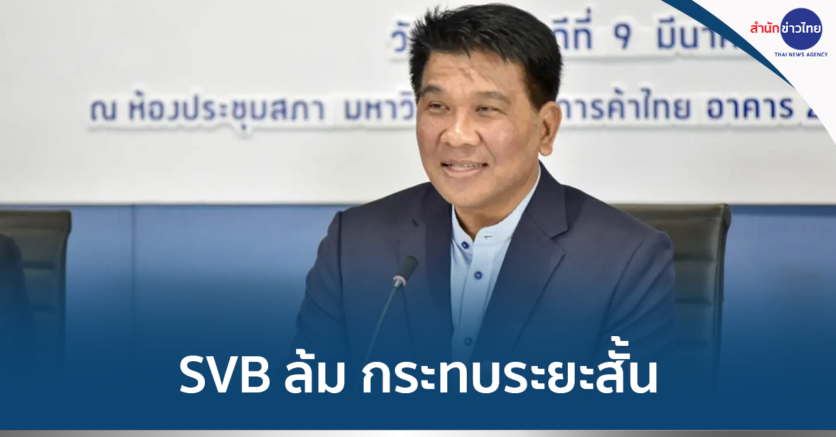 กรุงเทพฯ 13 มี.ค.-ประธานที่ปรึกษาศูนย์พยากรณ์เศรษฐกิจและธุรกิจ ม.หอการค้าไทย เชื่อธนาคาร SVB ล้มกระทบระยะสั้น หลังสหรัฐเข้าควบคุมและประกาศดูแลผู้ฝากเงินทั่วโลก ชี้ขาดสภาพคล่องจากปล่อยสินเชื่อดี พร้อมจับตาประชุมเฟดอาจไม่ขึ้นดอกเบี้ยนโยบายสูงและแรงมากนัก