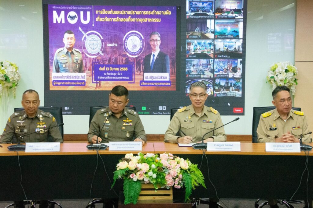 ดร.ณัฐพล รังสิตพล ปลัดกระทรวงอุตสาหกรรม และ พลตำรวจเอก ดำรงศักดิ์ กิตติประภัสร์ ผู้บัญชาการตำรวจแห่งชาติ ร่วมลงนามบันทึกความเข้าใจ ความร่วมมือว่าด้วยการป้องกันและปราบปรามการกระทำความผิดเกี่ยวกับการลักลอบทิ้งกากอุตสาหกรรม เพื่อยกระดับขีดความสามารถในการบังคับใช้กฎหมายที่เกี่ยวข้องกับการแก้ปัญหาการลักลอบทิ้งกากอุตสาหกรรมอย่างมีประสิทธิภาพ รวมถึงร่วมกันตรวจสอบโรงงานต้องสงสัยที่มีแนวโน้มเสี่ยงต่อการลักลอบทิ้งกากอุตสาหกรรม เพื่อนำผู้กระทำความผิดมาลงโทษและชดใช้ค่าเสียหายที่เกิดขึ้นต่อส่วนรวม