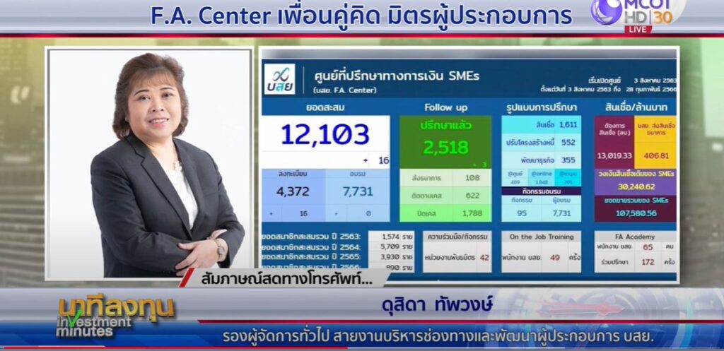 14 มี.ค. – บทบาทของบรรษัทประกันสินเชื่ออุตสาหกรรมขนาดย่อม (บสย.) F.A. Center ช่วยเหลือผู้ประกอบกำร SMEs ที่ได้รับผลกระทบจากโควิด-19