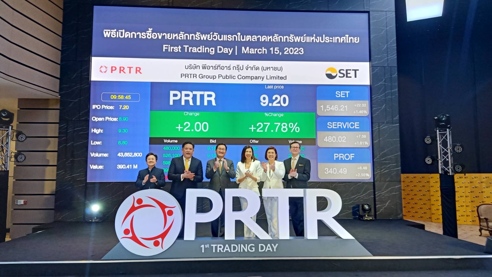 “PRTR” หรือ บมจ. พีอาร์ทีอาร์ กรุ๊ป ผู้ให้บริการด้านทรัพยากรบุคคลครบวงจร เข้าซื้อขายในตลาดหลักทรัพย์แห่งประเทศไทย วันนี้เป็นวันแรก ราคาเปิด 8.90 บาท พุ่งขึ้น 23.61 % จากราคาIPO ที่ 7.20 โดยมีนายภากร ปีตธวัชชัย กรรมการและผู้จัดการตลาดหลักทรัพย์แห่งประเทศไทย และนายแมนพงศ์เสนาณรงค์ รองผู้จัดการ หัวหน้าสายงานผู้ออกหลักทรัพย์ และนางสาวริศรา เจริญพานิช ประธานเจ้าหน้าที่บริหาร บริษัท พีอาร์ทีอาร์ กรุ๊ป จำกัด (มหาชน) หรือ “PRTR” ร่วมทำพิธีเปิดการซื้อขายวันแรก