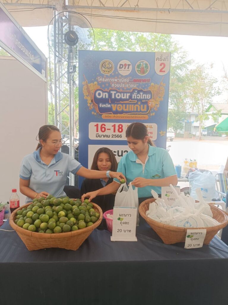 นายกรนิจ โนนจุ้ย รองอธิบดีกรมการค้าภายใน เปิดเผยว่า เมื่อวันที่ 16 มี.ค.2566 ที่ผ่านมา กรมฯ ได้ร่วมกับสำนักงานพาณิชย์จังหวัดขอนแก่น จัดโครงการ พาณิชย์ลดราคา! ออนทัวร์ ทั่วไทย จังหวัดขอนแก่น ครั้งที่ 2 ณบริเวณที่ว่าการอำเภอน้ำพอง จ.ขอนแก่น โดยได้เชื่อมโยงผลผลิตมะนาว เบอร์ 2-3 จากตลาดศรีเมืองทอง ซึ่งเป็นตลาดกลางผักและผลไม้ในความส่งเสริมของกรมการค้าภายใน นำมาจำหน่ายในราคาส่ง เพื่อช่วยลดภาระค่าครองชีพให้กับพี่น้องประชาชน โดยภายในงานได้รับเกียรติจาก รองผู้ว่าราชการจังหวัดขอนแก่น