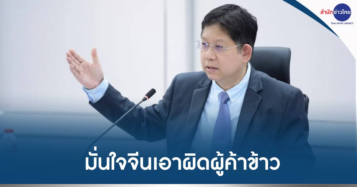 นนทบุรี 17 มี.ค.-อธิบดีกรมการค้าต่างประเทศ มั่นใจทางการจีนจะเอาผิดผู้ค้าข้าว 3 รายในจีน ฐานเติมสารแต่งกลิ่นในข้าวเพื่อให้มีรสชาติเหมือนกับข้าวหอมมะลิไทย ระบุกฎหมายจีนเข้มงวดมาก แม้เบื้องต้นไม่พบทั้ง 3 รายปลอมตราเครื่องหมายรับรอง แต่หลังจากนี้จะให้ทูตพาณิชย์ในจีนออกตรวจสอบ