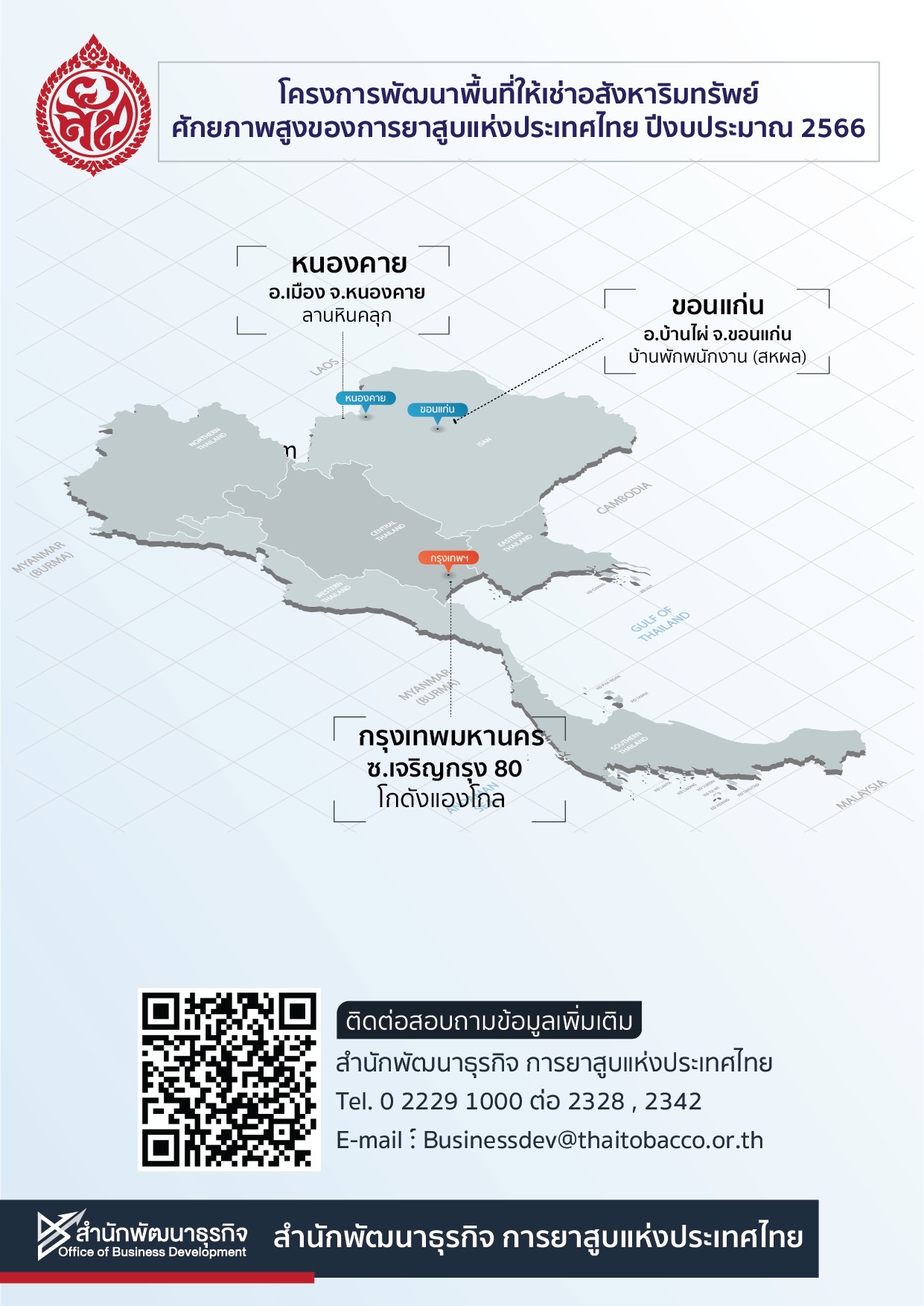 กรุงเทพฯ 22 มี.ค. -การยาสูบฯ เปิดประมูลให้เช่าที่ดินทำเลดีย่านเจริญกรุงติดเอเชียทีค แปลงใหญ่ จ.หนองคายติดชายแดนไทยลาว ระยะยาว 30 ปี