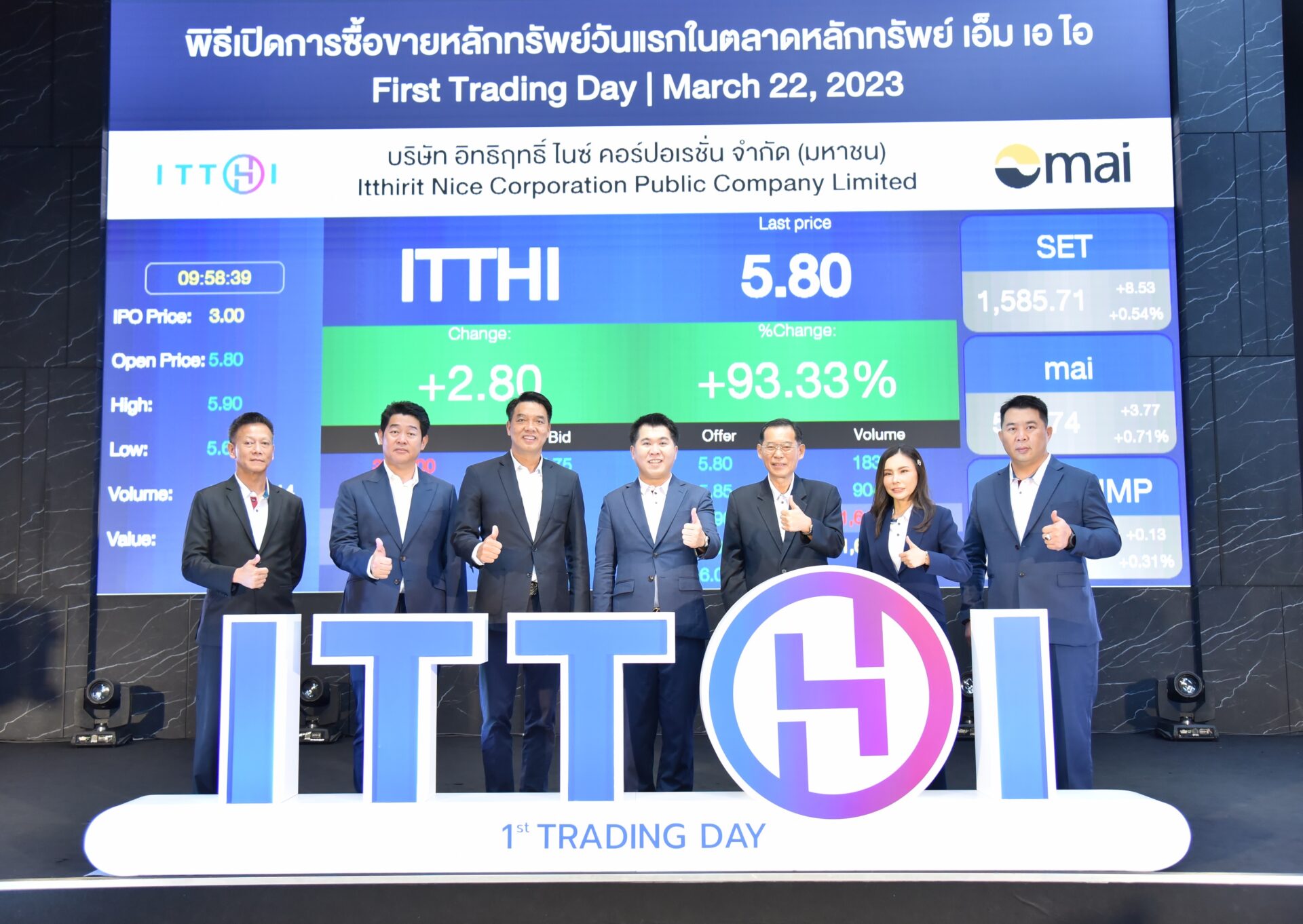 ITTHI มีราคาเปิดวันแรกที่ 5.80 บาท เพิ่มขึ้น 2.80 บาท หรือ 93.33% จากราคา IPO ที่ 3 บาทต่อหุ้น และปิดช่วงเช้าวันแรกที่ 4.20 บาท/หุ้น