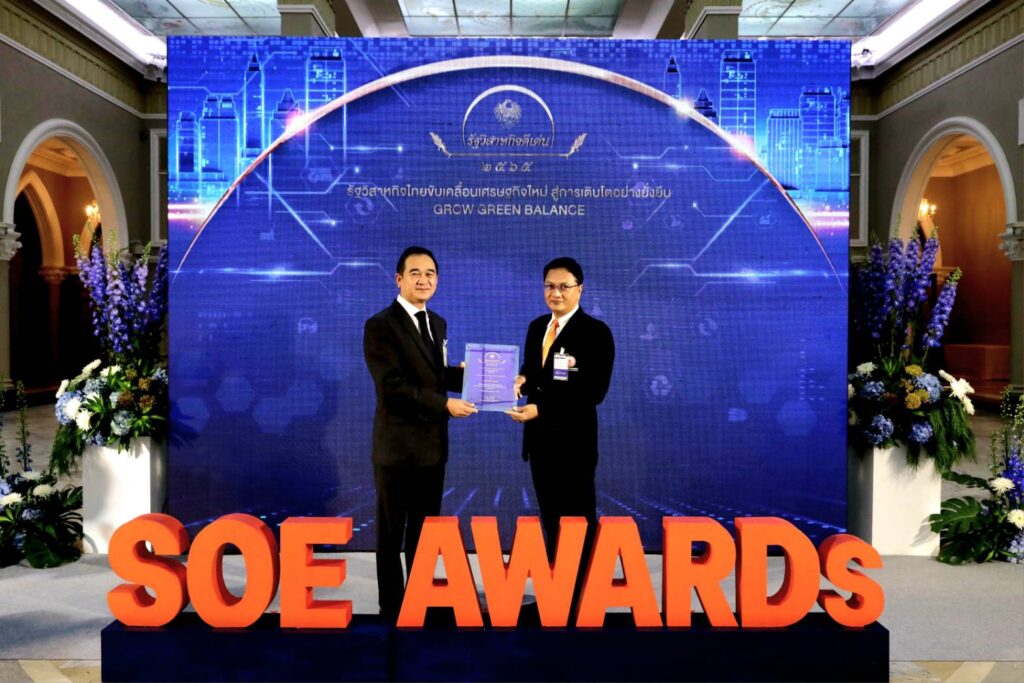 วันนี้ (24 มีนาคม 2566) พลเอก ประยุทธ์ จันทร์โอชา นายกรัฐมนตรีและรัฐมนตรีว่าการกระทรวงกลาโหม เป็นประธานในงานมอบรางวัลรัฐวิสาหกิจดีเด่น (SOE Award) ประจำปี 2565 ซึ่งจัดขึ้นโดย สำนักงานคณะกรรมการนโยบายรัฐวิสาหกิจ (สคร.) ภายใต้แนวคิด “รัฐวิสาหกิจไทยขับเคลื่อนเศรษฐกิจใหม่สู่การเติบโตอย่างยั่งยืน GROW GREEN BALANCE” โดยมี นายวิลาศ เฉลยสัตย์ ผู้ว่าการ MEA หรือ การไฟฟ้านครหลวง พร้อมด้วยผู้บริหารระดับสูง นายสมศักดิ์ บำรุงวัด รองผู้ว่าการ MEA เข้ารับ