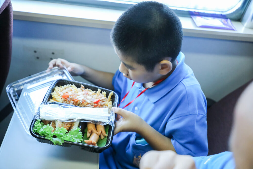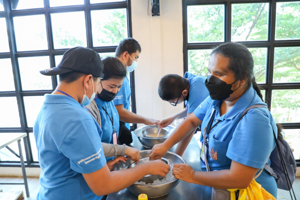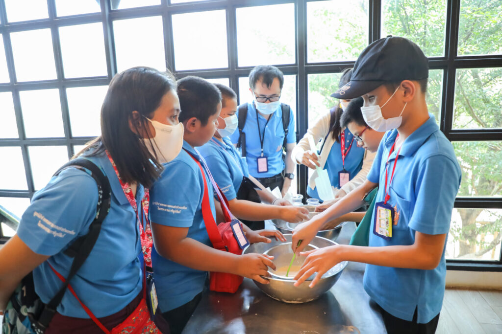 นอกจากนี้น้องๆได้รับประทานอาหารกลางวันที่มีการใช้วัตถุดิบพื้นบ้านที่มีชื่อเสียงของจังหวัดฉะเชิงเทรา อาทิ ข้าวหอมมะลิ ปลาช่อนต้มข่า กุ้งผัดยอดมะพร้าว ปลากะพงทอดน้ำปลา ไก่ห่อใบเตย ไข่ยัดไส้ แตงโมปลาแห้ง ลูกจากลอยแก้ว โดยทางมูลนิธิฉะเชิงเทราเพื่อการพัฒนา และภาคีเครือข่าย รวมถึงชุมชนวัดผาณิตาราม ได้นำมะม่วงและผลิตภัณฑ์ที่ทำมาจากมะม่วงซึ่งเป็นผลไม้ขึ้นชื่อของจังหวัดมาให้น้องๆได้เรียนรู้ รับประทาน สัมผัสของจริง พร้อมทั้งรับฟังข้อมูลไปในขณะเดียวกัน ไม่ว่าจะเป็นไอศกรีมมะม่วงที่เป็นผลิตภัณฑ์ที่ได้พัฒนาร่วมกับสถาบันเทคโนโลยีพระจอมเกล้าเจ้าคุณทหารลาดกระบัง (สจล.) มะม่วงน้ำปลาหวาน ที่มีมะม่วงหลากหลายชนิดอาทิ มะม่วงขายตึก มะม่วงเขียวเสวย มะม่วงแรด มาให้น้องๆได้ลิ้มรสรับรู้ พร้อมได้สัมผัสถึงความแตกต่าง เป็นต้น