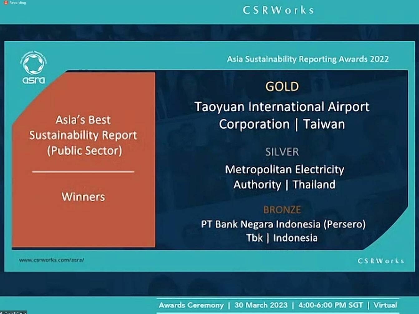 เมื่อวันที่ 30 มีนาคม 2566 MEA หรือการไฟฟ้านครหลวง รับรางวัลในงานประกาศรางวัล Asia Sustainability Reporting Awards (ASRA) 2022 รวม 2 ประเภท ได้แก่ รางวัล Asia’s Best Sustainability Report (Human Rights) ระดับ Silver และรางวัล Asia’s Best Sustainability Report (Public Sector) ระดับ Silver จากการนำเสนอ “รายงานความยั่งยืน การไฟฟ้านครหลวง ประจำปี 2564” โดยมี H.E. Ms Kara Owen, the British High Commissioner to Singapore เป็นประธานในพิธี ซึ่งมีผู้นำด้านธุรกิจและผู้เชี่ยวชาญด้านความยั่งยืนในระดับภูมิภาคเอเชีย รวมถึงบุคคลสำคัญจากสถาบันการศึกษา สถานทูต สมาคมการค้า และองค์กรสนับสนุนที่เกี่ยวข้องจากทั่วโลกเข้าร่วมเป็นเกียรติ