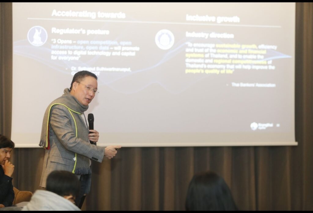 นายผยง ศรีวณิช กรรมการผู้จัดการใหญ่ธนาคารกรุงไทย จำกัด (มหาชน) กล่าวในงาน CEO Vision : Business Strategy 2023 ที่สาธารณรัฐเอสโตเนีย ระหว่างนำคณะสื่อมวลชนศึกษาดูงานด้าน e-Governance และเทคโนโลยีภาครัฐและเอกชน
