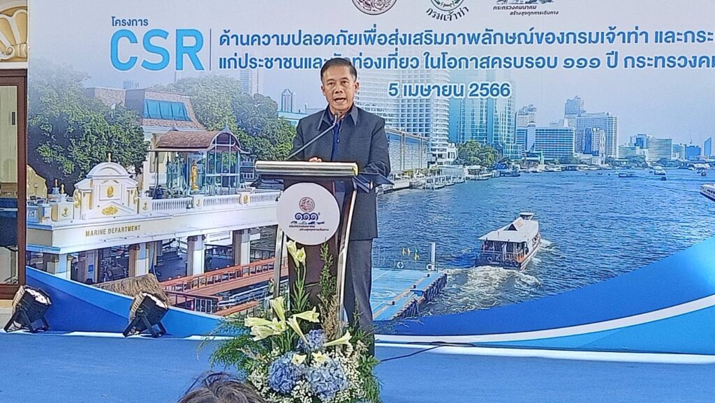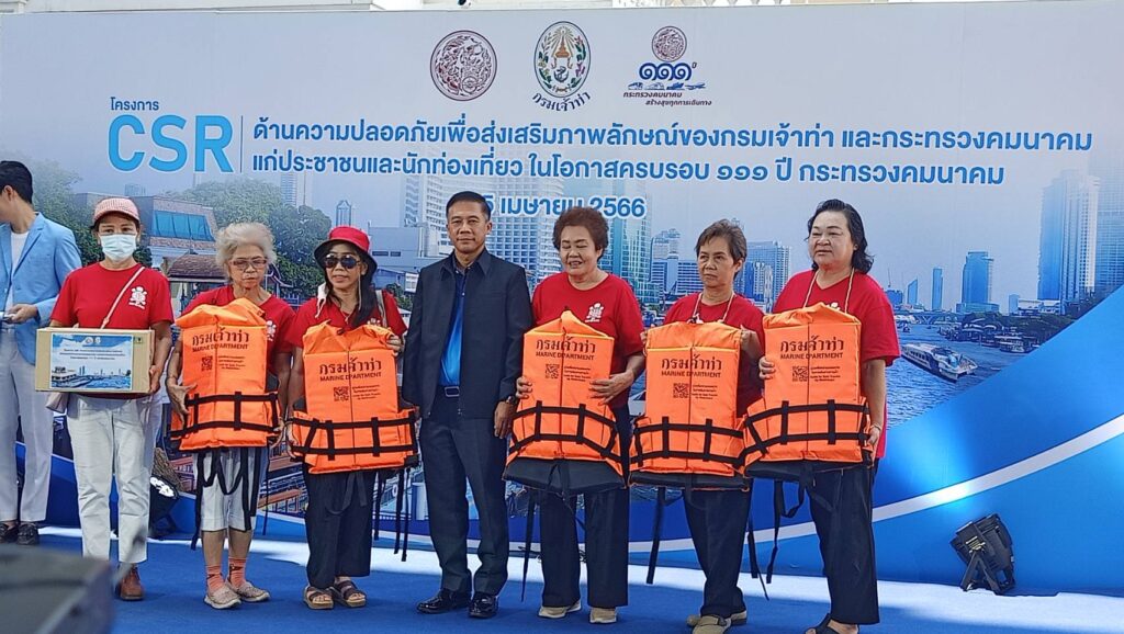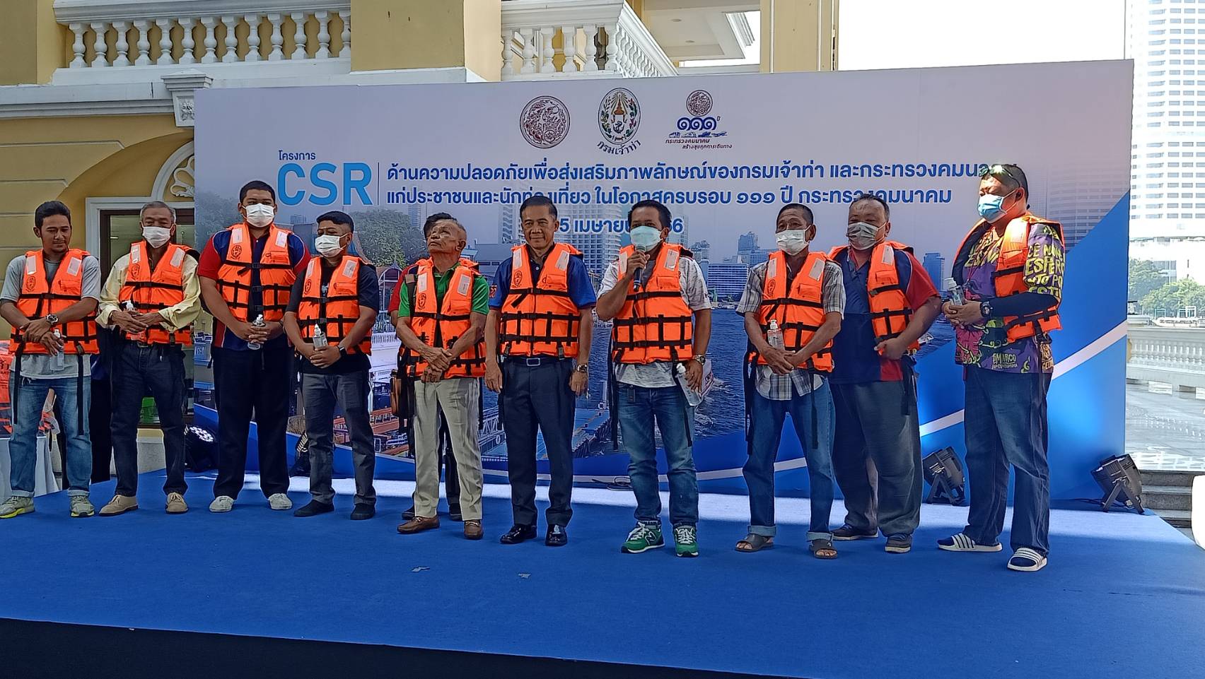 กรมเจ้าท่า 5 เม.ย.- กรมเจ้าท่า จัดกิจกรรม CSR รณรงค์ความปลอดภัยทางน้ำ ในโอกาสครบรอบ 111 ปีกระทรวงคมนาคม มอบเสื้อชูชีพ-เจลแอลกอฮอล์ ให้ชาวชุมชนริมน้ำ – ผู้ประกอบการเรือโดยสาร ใช้ดูแลความปลอดภัยประชาชนและนักท่องเที่ยว