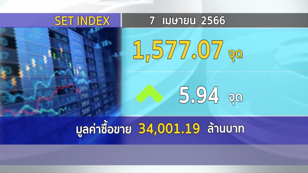 กทม. 7 เม.ย.- SET ปิดวันนี้ที่ 1,577.07 จุด เพิ่มขึ้น 5.94 จุด (+0.38%) มูลค่าการซื้อขาย 34,001.19 ล้านบาท
