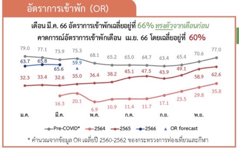 กรุงเทพฯ 7 เม.ย. – “ธปท.-สมาคมโรงแรมไทย” เผยผลสำรวจเดือน มี.ค.66 ธุรกิจโรงแรมยังทรงตัว แม้มี “เราเที่ยวด้วยกัน เฟส5” ขณะที่นักท่องเที่ยวจีนยังไม่กลับมามากนัก คาดไตรมาส 2/66 จะดีขึ้น ส่วนแรงงานยังขาดแคลน
