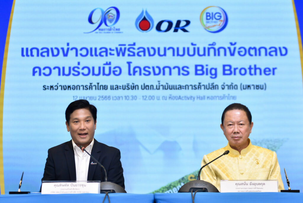 กรุงเทพฯ 12 เม.ย.-หอการค้าไทย ผนึก โออาร์พัฒนาศักยภาพ SMEs ให้เติบโตอย่างยั่งยืนโดยลงนามบันทึกข้อตกลงความร่วมมือ โครงการ Big Brother ระหว่าง หอการค้าไทย และ บริษัท ปตท.น้ำมันและการค้าปลีก จำกัด (มหาชน) หรือโออาร์ ร่วมเป็นบริษัทพี่เลี้ยงในการพัฒนาศักยภาพ ถ่ายทอดองค์ความรู้ และประสบการณ์ทางธุรกิจให้กับผู้ประกอบการ SMEs ให้มีการเติบโตอย่างเข้มแข็ง
