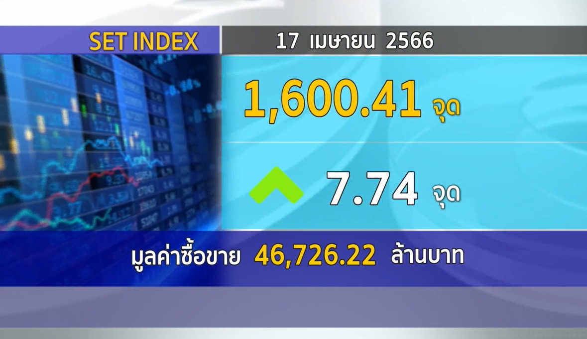 กทม. 17 เม.ย.-SET ปิดวันนี้ที่ 1,600.41 จุด เพิ่มขึ้น 7.74 จุด (+0.49%) มูลค่าการซื้อขาย 46,726.22 ล้านบาท