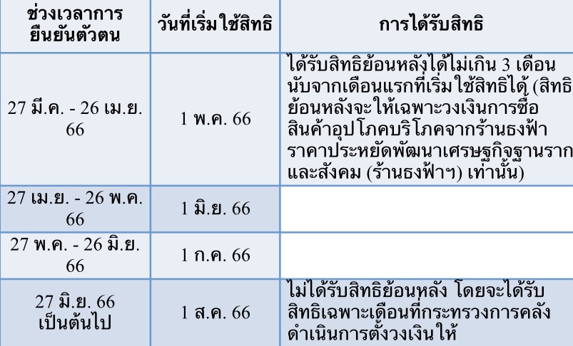 สำหรับการยืนยันตัวตนผู้ผ่านเกณฑ์ ต้องใช้บัตรประจำตัวประชาชนอเนกประสงค์ (Smart Card) และต้องผูกบัญชีพร้อมเพย์กับเลขประจำตัวประชาชนกับธนาคารใดก็ได้ เนื่องจากการผูกบัญชีพร้อมเพย์ไว้ล่วงหน้าจะทำให้ผู้ได้รับสิทธิโครงการฯ สะดวกในการรับสิทธิสวัสดิการ หากภาครัฐมีการให้สวัสดิการเป็นเงินโอนเข้าบัญชีในอนาคต หากผู้ผ่านเกณฑ์ที่ยืนยันตัวตนไม่สำเร็จ เนื่องจากการตรวจสอบสถานะบัตรประจำตัวประชาชนไม่ผ่าน ในกรณีนี้ ขอให้ผู้ที่ยืนยันตัวตนไม่สำเร็จ ตรวจสอบและแก้ไขข้อมูลได้ ณ ที่ว่าการอำเภอ หรือสำนักงานเขตกรุงเทพมหานคร และหากตรวจสอบและแก้ไขสถานะบัตรประจำตัวประชาชน จากนั้นให้ยืนยันตัวตนอีกครั้ง กรณีเปรียบเทียบใบหน้าไม่ผ่าน ขอให้ติดต่อธนาคารกรุงไทย เพื่อดำเนินการยืนยันตัวตนตามขั้นตอนของธนาคารฯ ต่อไป