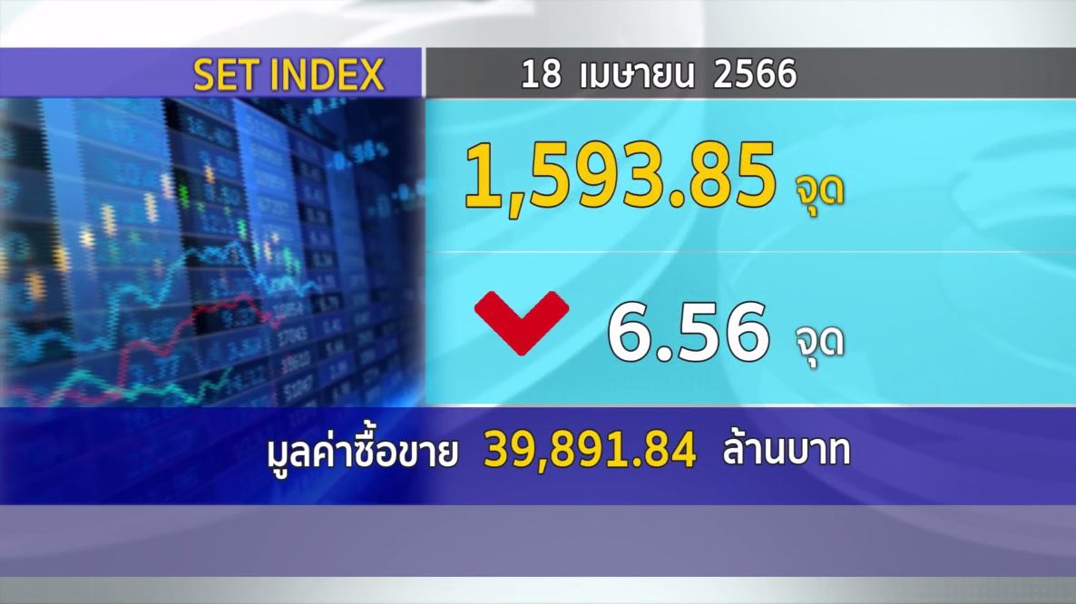 SET ปิดวันนี้ที่ 1,593.85 จุด ลดลง 6.56 จุด (-0.41%) มูลค่าการซื้อขาย 39,891.84 ล้านบาท นักวิเคราะห์ฯ เผยตลาดหุ้นไทยวันนี้พักตัวตามตลาดหุ้นในภูมิภาค หลังจากยังไม่มีปัจจัยใหม่หนุน และนักลงทุนยังรอดูการเปิดเผยผลประกอบการไตรมาส 1/66 ของบริษัทจดทะเบียนไทย ส่วนแนวโน้มวันพรุ่งนี้ (19 เม.ย.66) คาดยังแกว่งไซด์เวย์ในกรอบ ให้แนวรับไว้ที่ 1,590-1,580 จุด และแนวต้าน 1,600-1,610 จุด