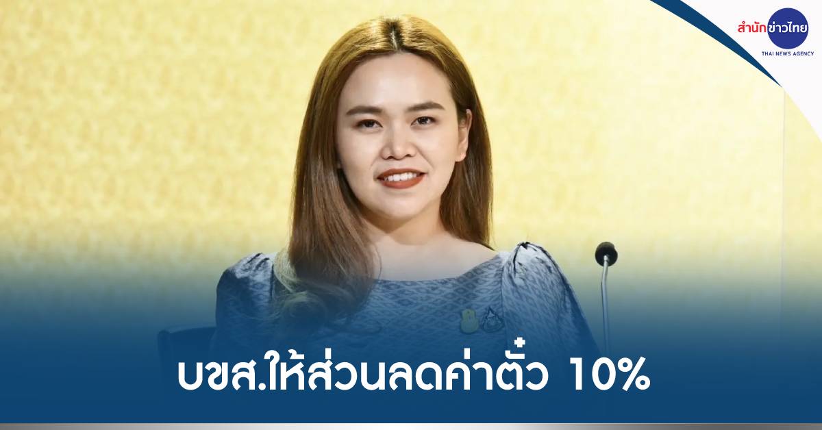 นางสาวไตรศุลี ไตรสรณกุล รองโฆษกประจำสำนักนายกรัฐมนตรี เปิดเผยว่า ช่วงเทศกาลสงกรานต์ ระหว่างวันที่ 11 – 13 เมษายนที่ผ่านมา มีประชาชนจำนวนมากเดินทางกลับภูมิลำเนาอย่างปลอดภัยเพื่อสังสรรค์ร่วมกิจกรรมกับครอบครัว โดย บริษัท ขนส่ง จำกัด (บขส.) พร้อมอำนวยความสะดวกให้กับประชาชนตลอดการเดินทางช่วงขากลับทั้งนี้ เพื่อช่วยบรรเทาและลดความแออัดในการเข้าใช้สถานีขนส่งฯ บขส. ขอเชิญชวนผู้โดยสาร ร่วมโครงการ “ลด10% ไปก่อน – กลับทีหลัง” สำหรับสมาชิก บขส. Card ที่ซื้อตั๋วโดยสารผ่านช่องทางออนไลน์ Application : E-ticket, Website บขส. : https://tcl99web.transport.co.th เดินทางระหว่างวันที่ 18 – 24 เมษายน 2566 จะได้รับส่วนลดค่าตั๋วโดยสาร 10% (ไม่รวมค่าธรรมเนียม) พร้อมทั้งรับคะแนนสะสมคูณ 2 ทันที นอกจากนี้ ประชาชนที่มีสิทธิ์บัตรสวัสดิการแห่งรัฐ สามารถนำสิทธิมาซื้อตั๋วโดยสารของ บขส.ได้ในวงเงิน 750 บาทต่อเดือน ที่หน้าช่องจำหน่ายตั๋วของ บขส.ทั่วประเทศ