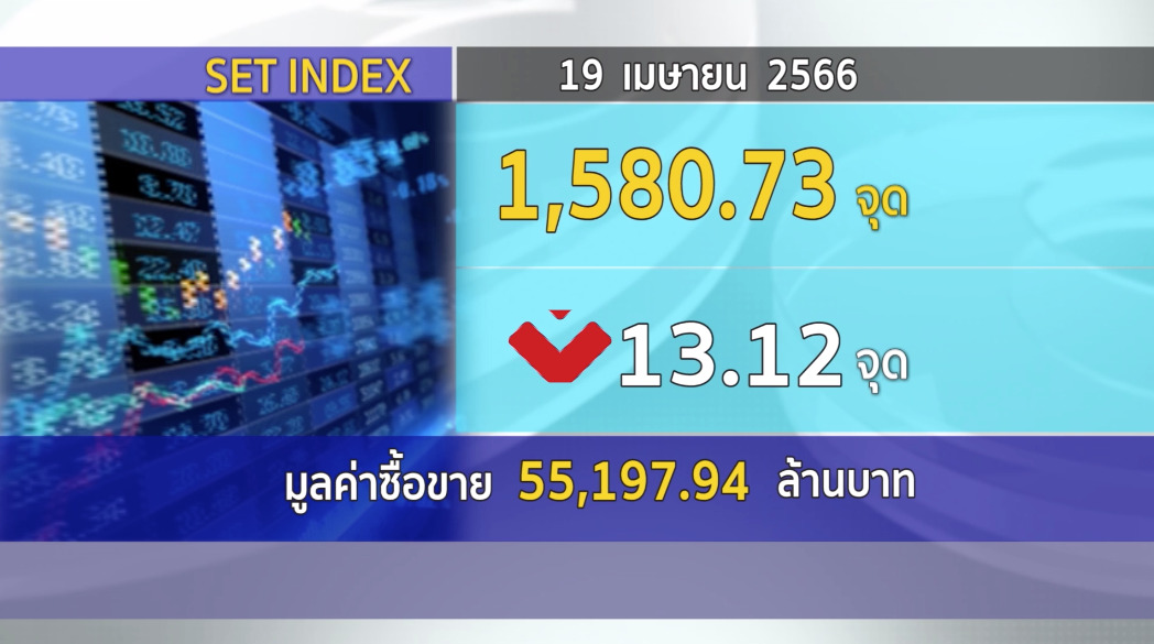 กทม. 19 เม.ย.- SET ปิดวันนี้ที่ 1,580.73 จุด ลดลง 13.12 จุด (-0.82%) มูลค่าการซื้อขาย 55,197.94 ล้านบาท