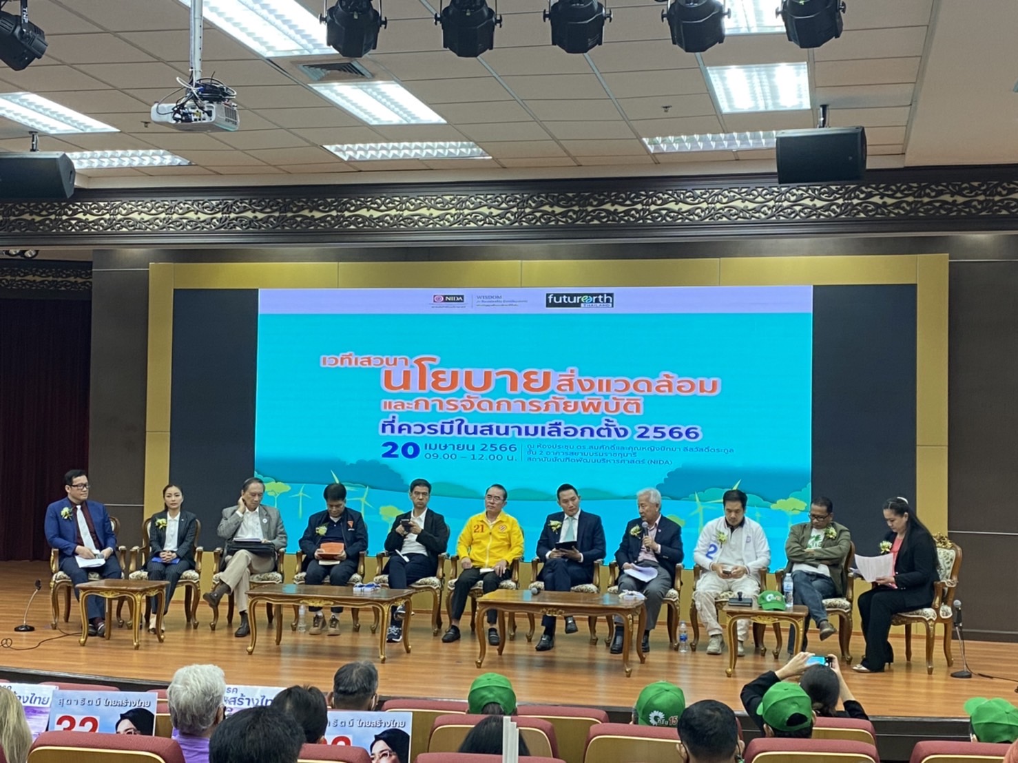 นิด้า 20 เม.ย.- นักวิชาการ เรียกร้อง พรรคการเมือง ชูนโยบายสิ่งแวดล้อม แก้น้ำท่วม พายุ ปัญหาฝุ่น PM 2.5 เริ่มรุนแรงมากขึ้น อย่าปล่อยให้ ลูกหลาน…ตาย…ผ่อนส่ง
