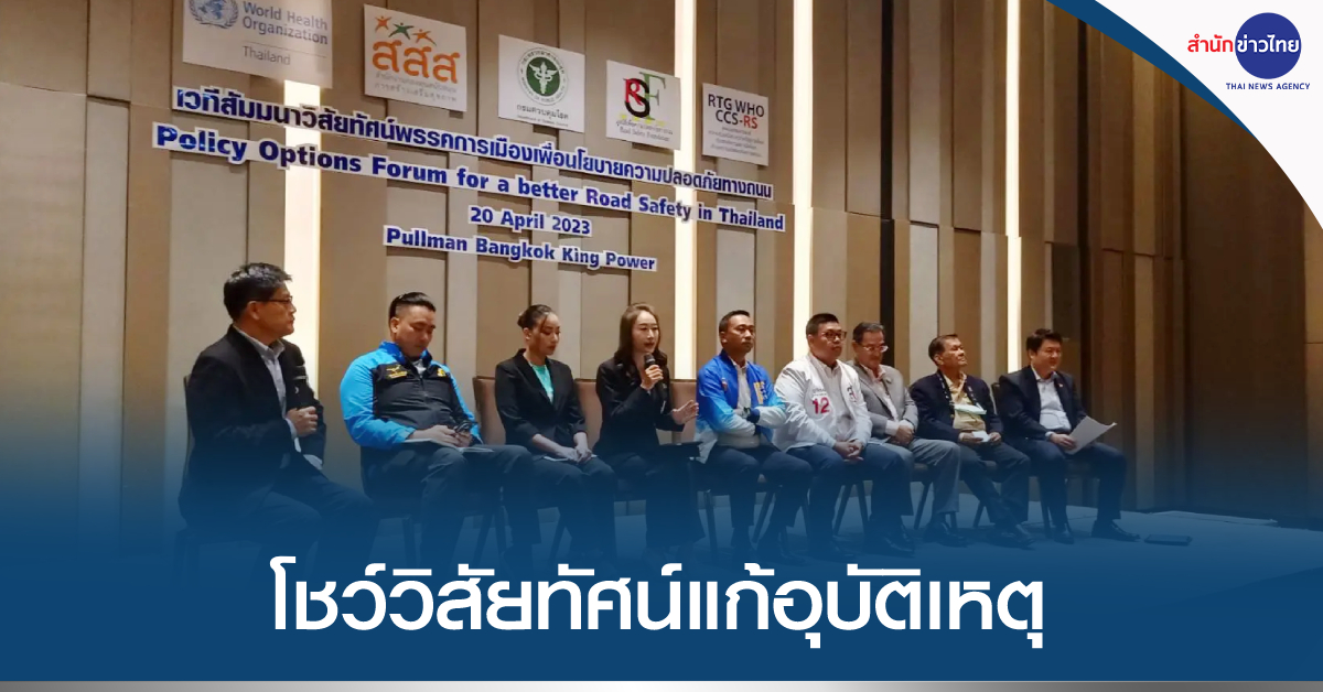 ในเวทีแสดงวิสัยทัศน์ “พรรคการเมืองเพื่อนโยบายความปลอดภัยทางถนน” จากผู้แทนพรรคการเมืองต่างๆ จัดโดยภาคีความปลอดภัยทางถนน โดยในเวทีฯ มีการตั้งคำถามหลักว่า หากได้เป็นรัฐบาลจะทำหรือไม่ทำอะไรในเรื่องความปลอดภัยบนถนน และจะบริหารงบประมาณอย่างไรเพื่อแก้ปัญหาอุบัติเหตุ