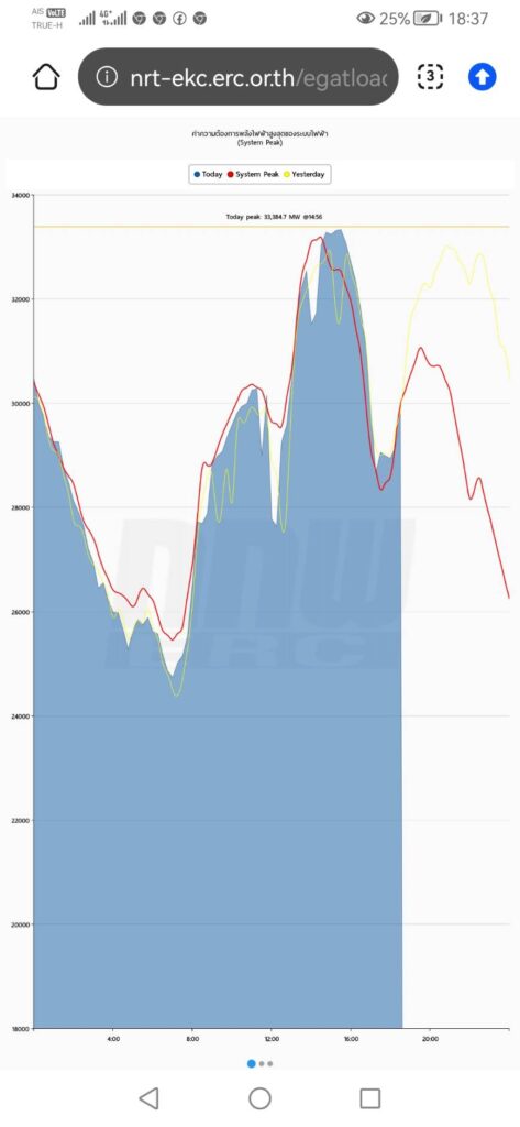 โอกาสพีคสูงสุดยังมีได้อีก เนื่องจากอากาศร้อน และทางสำนักงานนโยบายและแผนพลังงาน(สนพ.) ได้คาดการณ์ปริมาณการใช้ไฟฟ้าสูงสุดของปีนี้จะมากกว่า 34,000 เมกะวัตต์ .-สำนักข่าวไทย