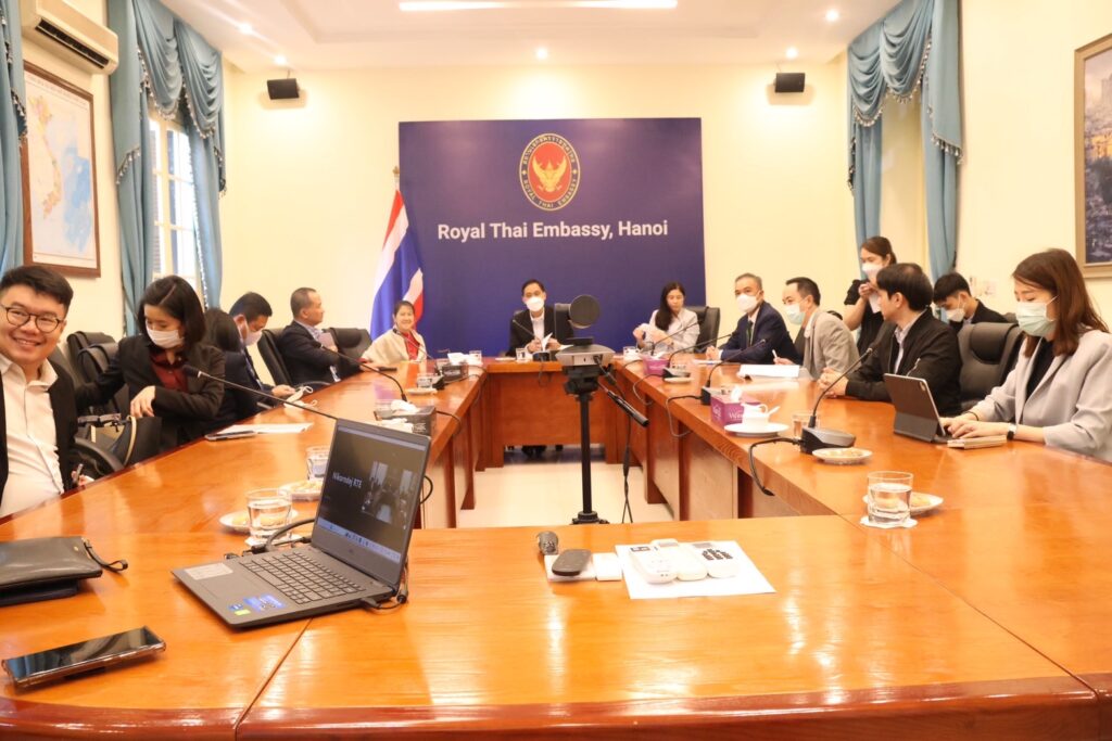 ทั้งนี้ กำหนดการวันที่ 25-26 เม.ย.66 นี้ คณะผู้บริหารกระทรวงพาณิชย์ ได้นัดหารือนายนิกรเดช พลางกูรเอกอัครราชทูตไทย ณ กรุงฮานอย เพื่อติดตามสถานการณ์เศรษฐกิจ การค้า ของเวียดนามตอนเหนือ และติดตามโอกาสที่จะขยายการค้า การลงทุน ให้กับผู้ประกอบการของไทย และเดินทางต่อไปยังนครโฮจิมินห์ เพื่อสำรวจตลาดการค้าสินค้าไทย ที่ห้าง Tops Market สาขา Thao Dien นครโฮจิมินห์ เข้าร่วมเป็นสักขีพยานการลงนามความร่วมมือ (MOU) เพื่อนำเข้าและจัดจำหน่ายไวน์เขาใหญ่ ซึ่งเป็นไวน์ที่ได้รับการขึ้นทะเบียนสิ่งบ่งชี้ทางภูมิศาสตร์ (GI) และมอบประกาศนียบัตรร้านอาหาร Thai Select Signature ให้กับร้านอำแดงไต้ฝุ่นอีด้วย.-สำนักข่าวไทย