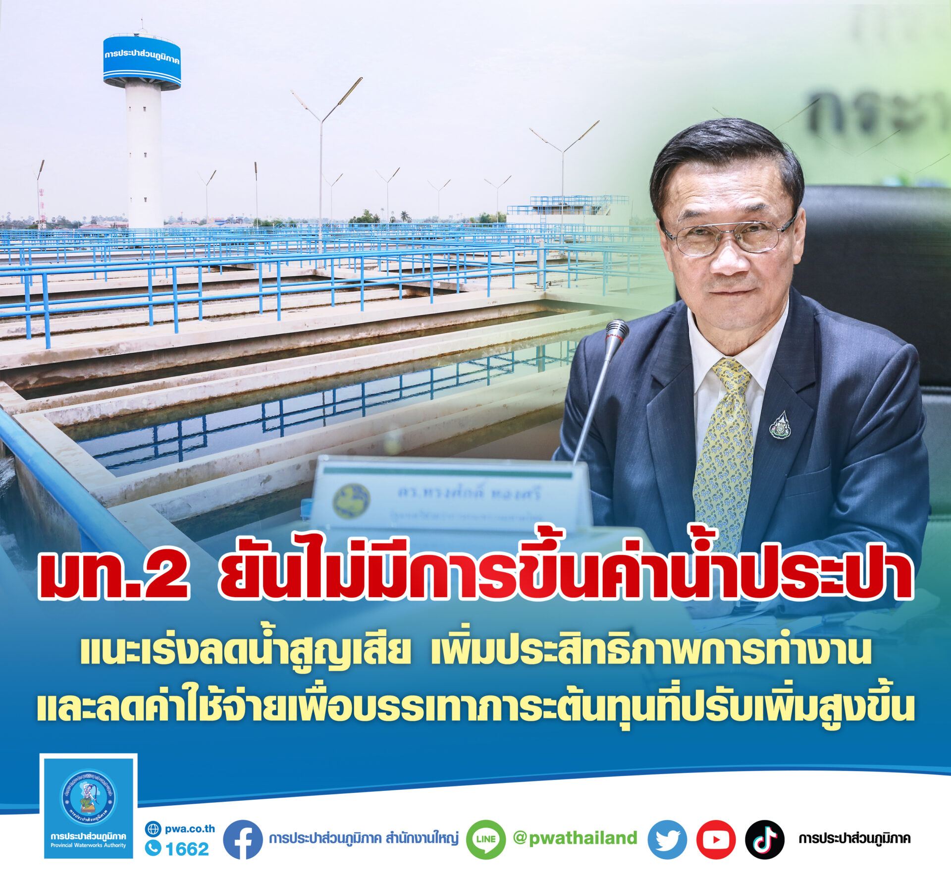 มท.2 กล่าวเพิ่มเติมว่า ได้เน้นย้ำให้ กปภ. มุ่งมั่นดำเนินงานทั้งการขยายเขตให้บริการน้ำประปารองรับความต้องการใช้น้ำในส่วนภูมิภาคเพื่อประโยชน์ของประชาชน สอดคล้องกับนโยบาย “บำบัดทุกข์ บำรุงสุข” ของกระทรวงมหาดไทย ตลอดจนให้ความสำคัญในการบริหารจัดการลดน้ำสูญเสียเพื่อให้มีปริมาณน้ำกลับคืนมาให้บริการประชาชนเพิ่มมากขึ้น เพิ่มประสิทธิภาพกระบวนการทำงานและลดค่าใช้จ่ายในการดำเนินงานต่าง ๆ ซึ่งจะช่วยบรรเทาภาระต้นทุนที่ปรับเพิ่มสูงขึ้น