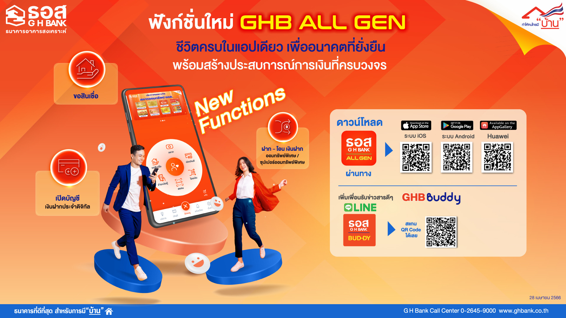 กรุงเทพฯ 28 เม.ย.-ธอส. พัฒนา 3 ฟังก์ชั่นใหม่ใน App : GHB ALL GEN ยกระดับบริการด้านดิจิทัล ครบ จบ ในแอปเดียว