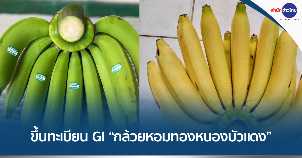 นนทบุรี 1 พ.ค. – กรมทรัพย์สินทางปัญญาขึ้นทะเบียน GI “กล้วยหอมทองหนองบัวแดง” ของดีจังหวัดชัยภูมิ หวังนำสินค้าเกษตรไทยโกอินเตอร์ โดยเฉพาะตลาดญี่ปุ่น สร้างเงินชุมชนไม่ต่ำกว่า 40 ล้านบาท/ปี