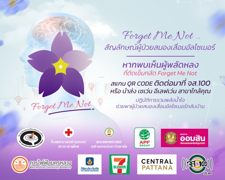 ขณะนี้ ร้านเซเว่นฯ 6,105 สาขาในพื้นที่กรุงเทพฯ และปริมณฑล มีความพร้อมในการเป็นจุดประสานงานรับส่งต่อผู้ป่วย กรณีประชาชนพบเห็นผู้ป่วยพลัดหลงซึ่งสามารถสังเกตได้จากเข็มกลัดรูปดอก Forget Me Not ที่เสื้อ สามารถนำผู้ป่วยมาที่ร้าน ซึ่งพนักงานของเราจะช่วยดูแลเบื้องต้น และประสานกับ จส.100 ให้ญาติ หรือเจ้าหน้าที่มารับตัวต่อไป ปัจจุบันประเทศไทยก้าวสู่สังคมผู้สูงวัย โดยมีผู้ป่วยโรคสมองเสื่อมเกือบ 1 ล้านคน และมีจำนวนเพิ่มขึ้นเกือบ 1 แสนคนทุกๆ ปี ซึ่งโรคนี้ไม่สามารถรักษาให้หายขาดได้ จำเป็นต้องใช้ความเข้าใจ และมีระบบรองรับด้านสวัสดิภาพความเป็นอยู่ ความปลอดภัยที่ดี เพื่อให้ผู้ป่วยยังสามารถใช้ชีวิตได้อย่างมีความสุขได้ในสังคม