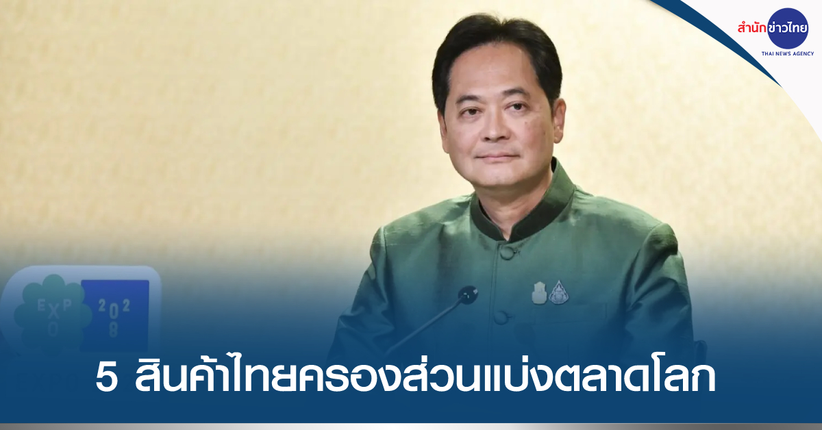 ทำเนียบฯ 3 พ.ค.- รัฐบาลปลื้ม 5 สินค้าไทยครองส่วนแบ่งส่งออกอันดับ 1 ตลาดโลกในปี 65 ทุเรียนพระเอกส่วนแบ่งถึงร้อยละ 93 สะท้อนคุณภาพสินค้าไทย เดินหน้าส่งเสริมเชิงรุก