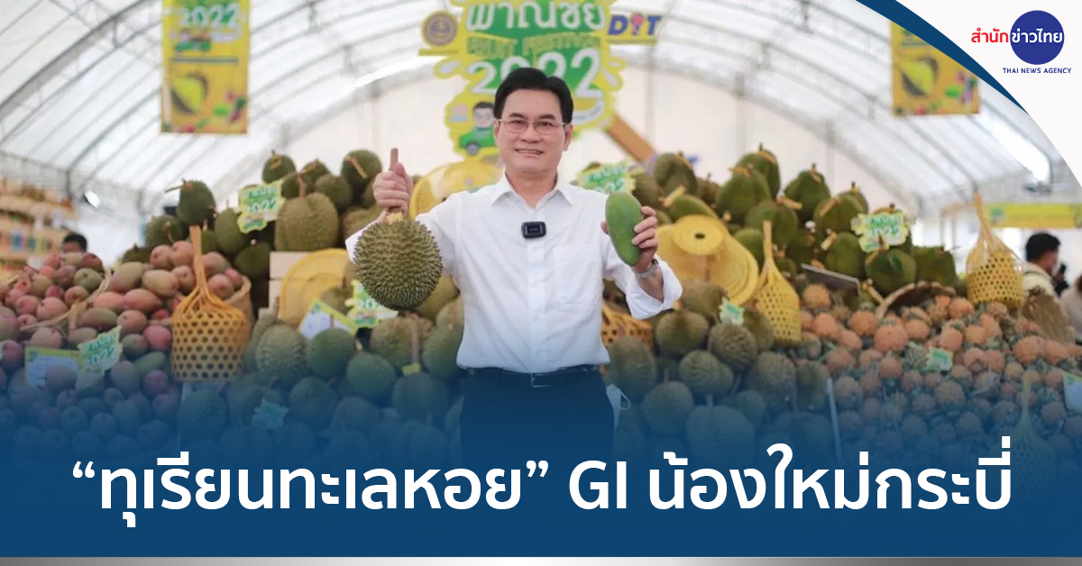 นนทบุรี 8 พ.ค.-รัฐมนตรีพาณิชย์ชวนลิ้มรส “ทุเรียนทะเลหอย” GI น้องใหม่กระบี่ การันตีด้วยคุณภาพโดนใจคนไทยและต่างชาติ รสชาติ “เข้มข้น-หวานละมุน” คาดสร้างเงินสู่ท้องถิ่นอีกกว่า 70 ล้านบาทต่อปี